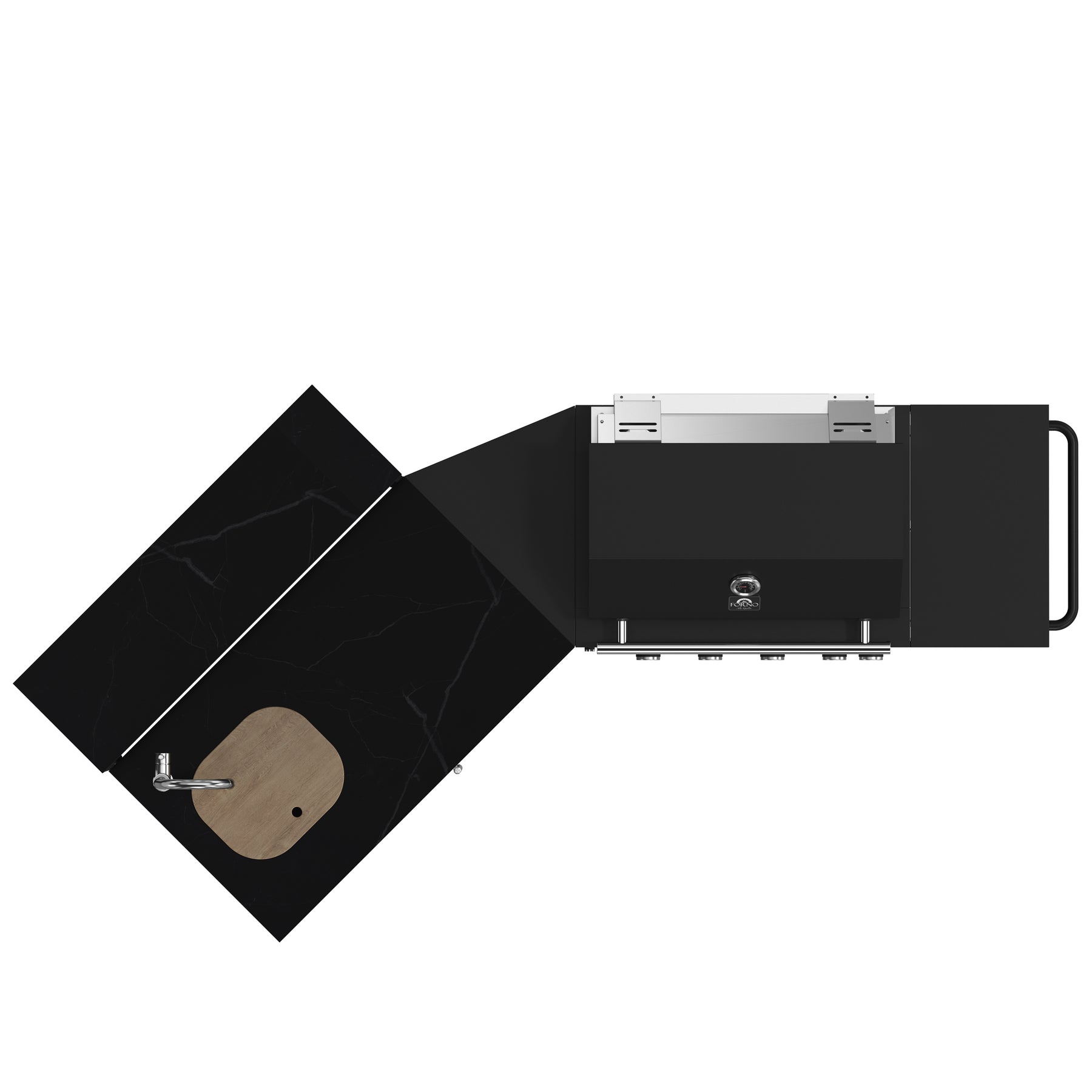 Take outdoor cooking to the next level with the Forno All’Aperto, a powerful and stylish BBQ station built for performance and durability. With 62,600 BTUs of total cooking power, this unit features three stainless steel burners and ceramic infrared burners, ensuring precise heat distribution across its 26" x 18" cooking surface with 8mm stainless steel grills for superior results. Designed to withstand the elements, its black-coated aluminized steel construction offers exceptional corrosion resistance, while sleek black sintered stone countertops provide a durable, scratch-resistant workspace that enhances any outdoor setting. Thoughtfully equipped with halogen lights for nighttime grilling, a rotisserie kit for slow roasting, and a pull-out waste bin for convenience, this unit is mostly assembled for easy setup. Propane-ready and convertible to natural gas, it also includes red control knob lights and a waterproof cover for long-lasting protection.