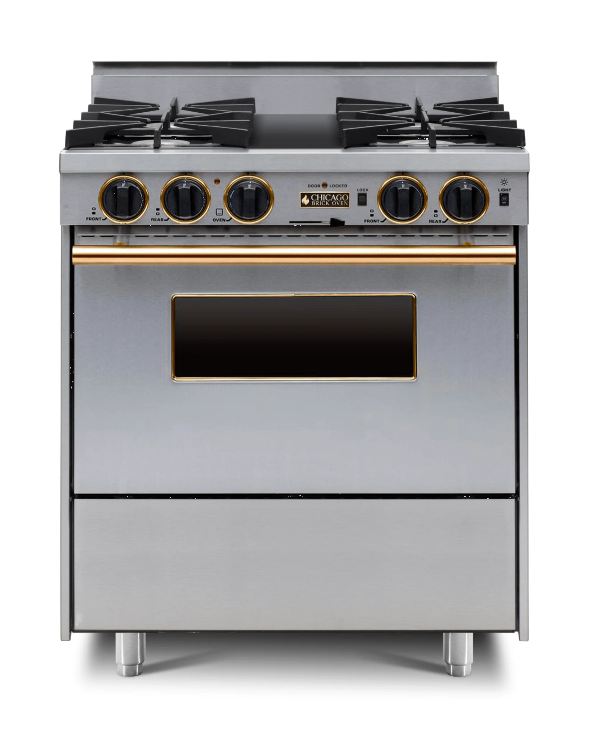 Chicago Brick Oven 30” Dual-Fuel Self-Cleaning Convection Range - Open Burners