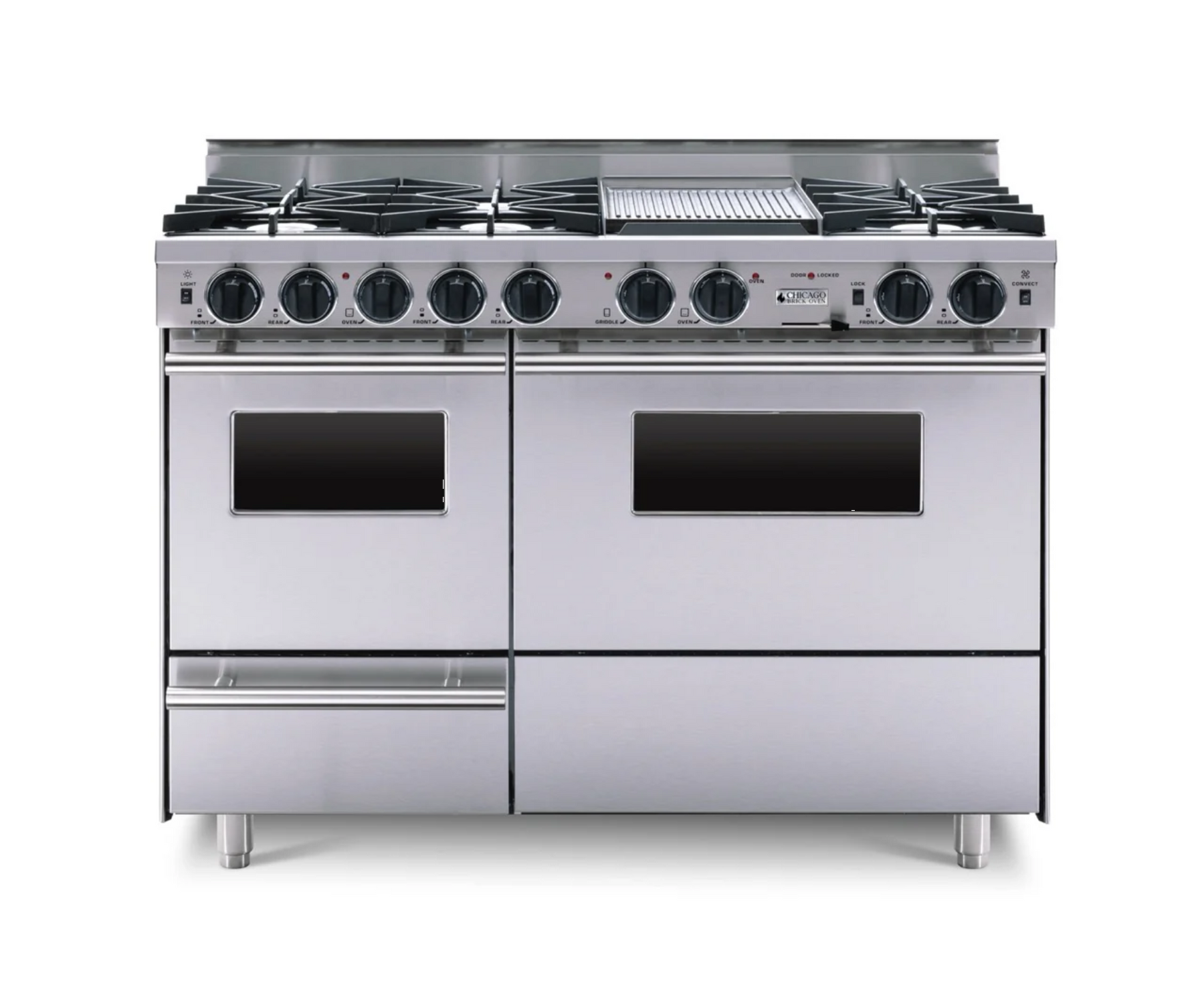 Chicago Brick Oven 48” True Dual-Fuel Self-Cleaning Convection Range - Open Burners