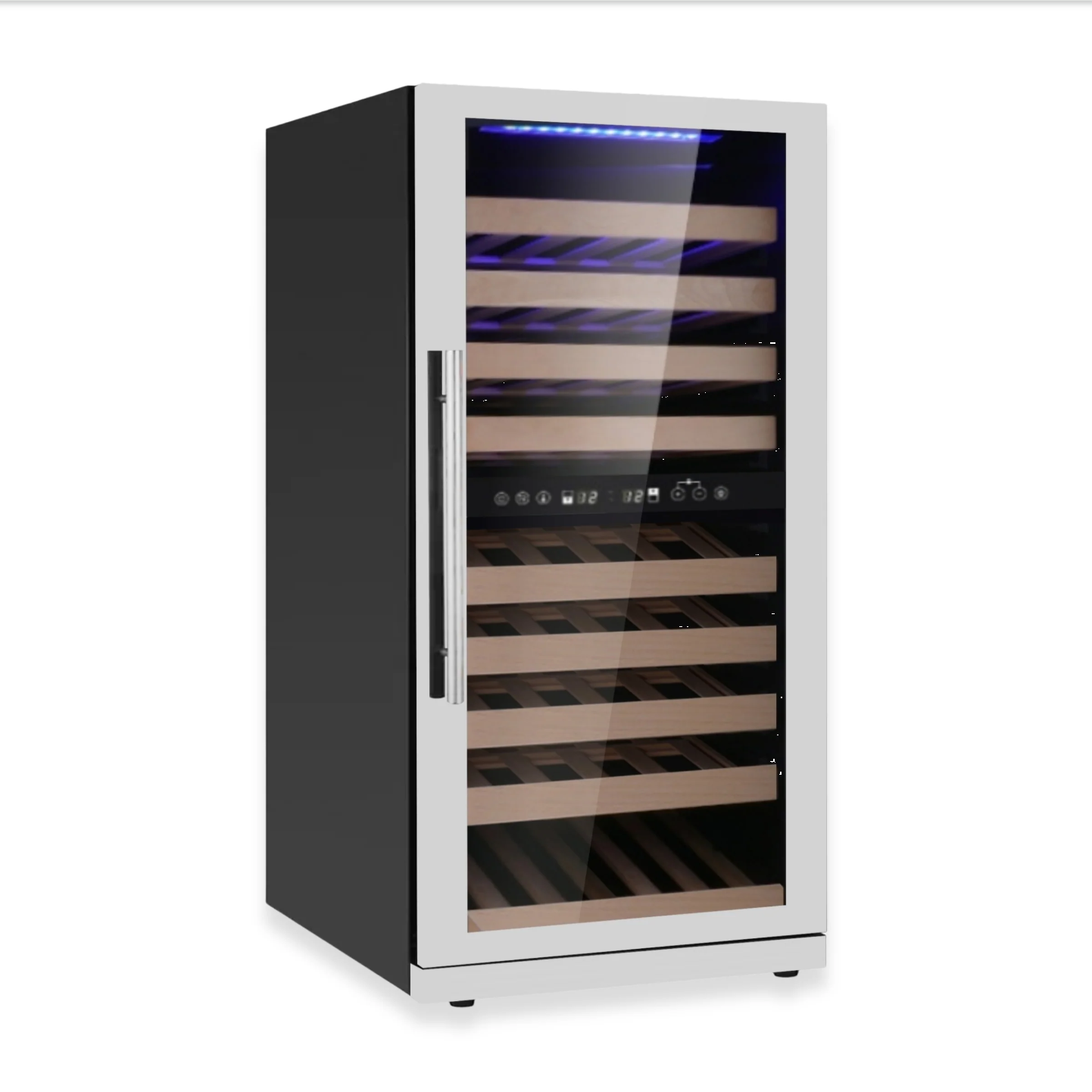 The 47-Inch Tall Dual Zone Wine Cooler with Low-E Glass Door is designed to provide optimal wine storage with modern efficiency. Featuring anEmbraco Inverter Compressor, this wine cooler ensures ultra-quiet and energy-efficient cooling, consuming up to 40% less energy than traditional models.