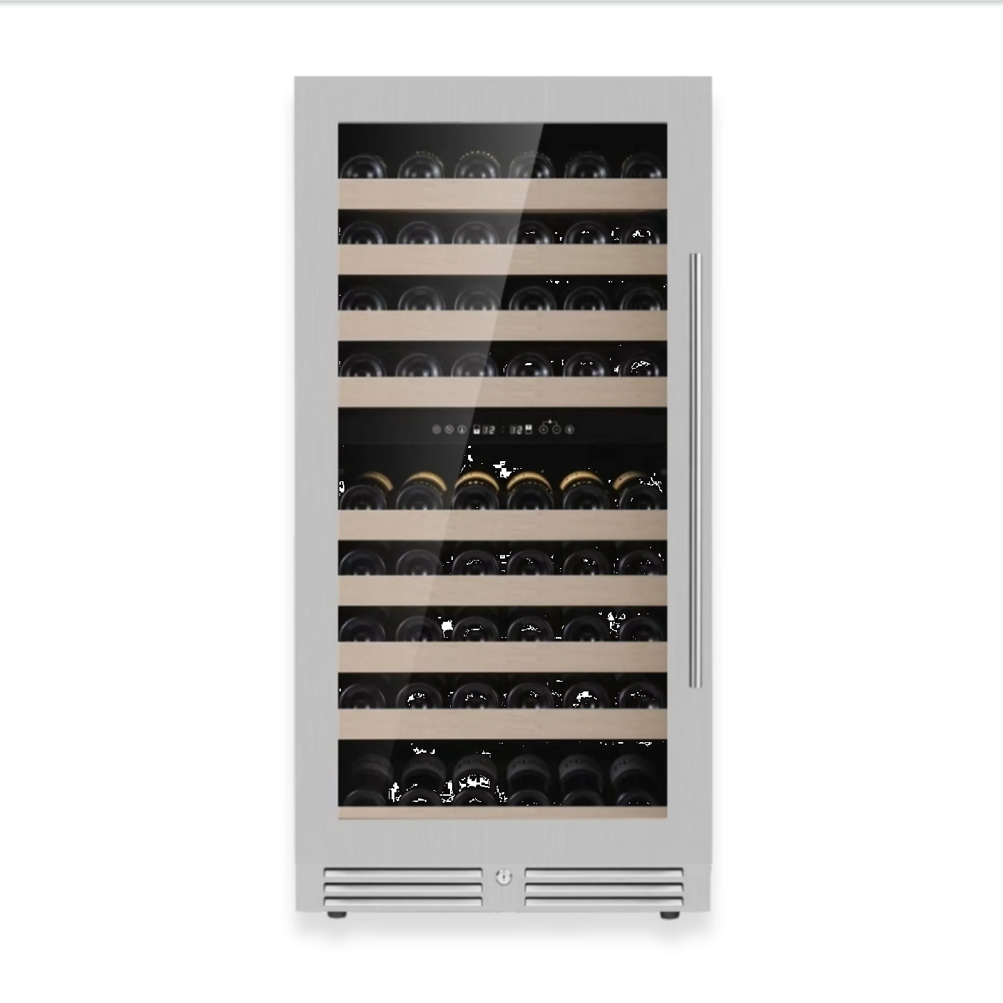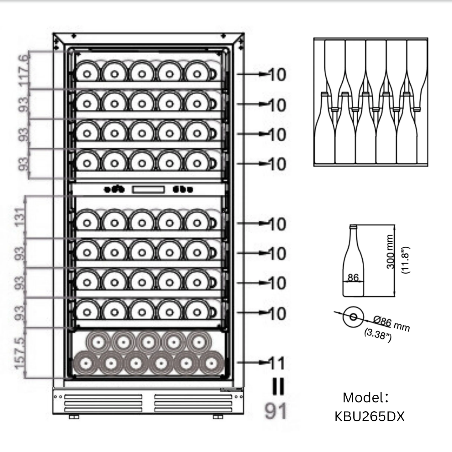 - Spacious Storage: Accommodates up to 91 bottles (265 L volume) with 8 adjustable beech wooden shelves.