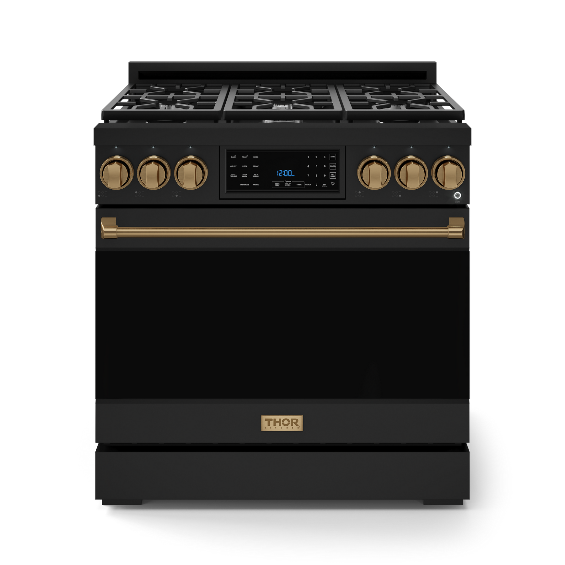 THOR 36 Inch Professional Gas Range with Tilt Panel Touch Control in Black/Bronze | Gordon Ramsay Series – RSG36B-BRZ