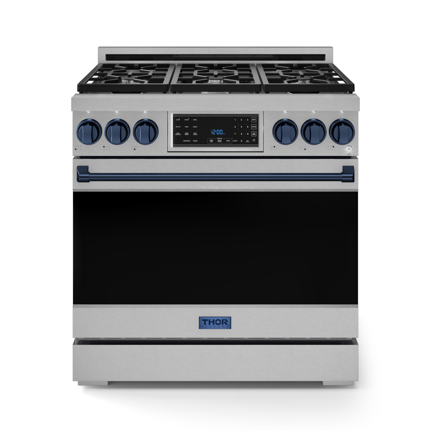 THOR 36 Inch Professional Gas Range with Tilt Panel Touch Control in Stainless Steel/Blue | Gordon Ramsay Series – RSG36-BLU