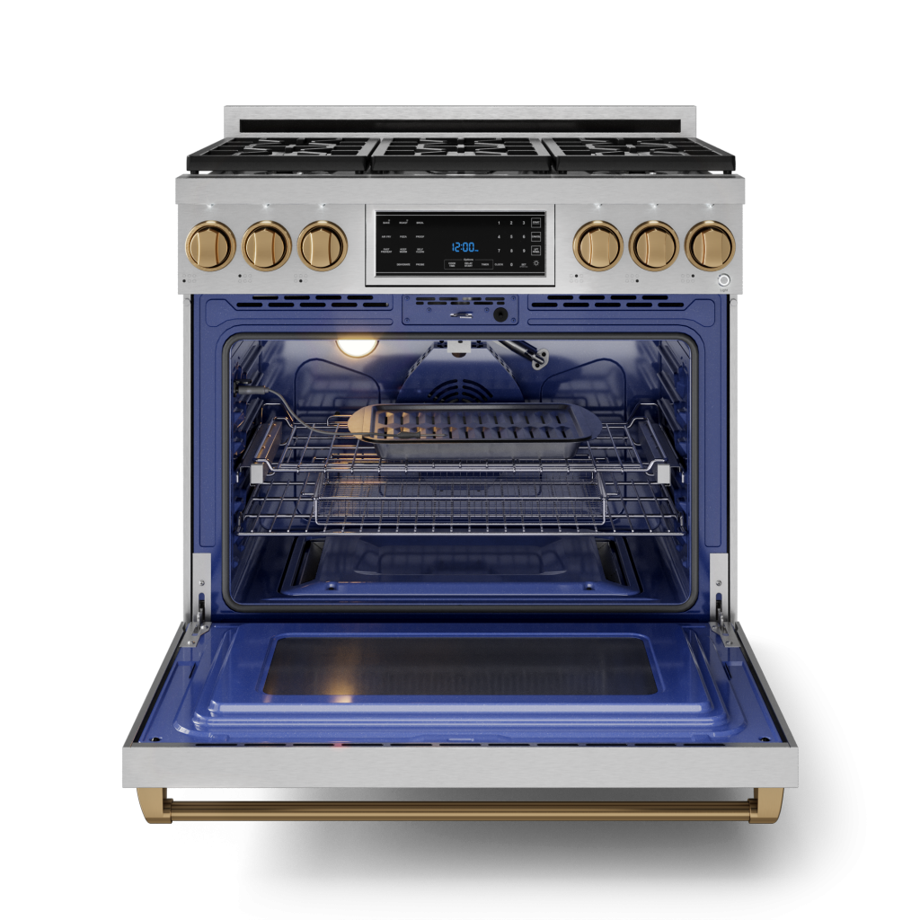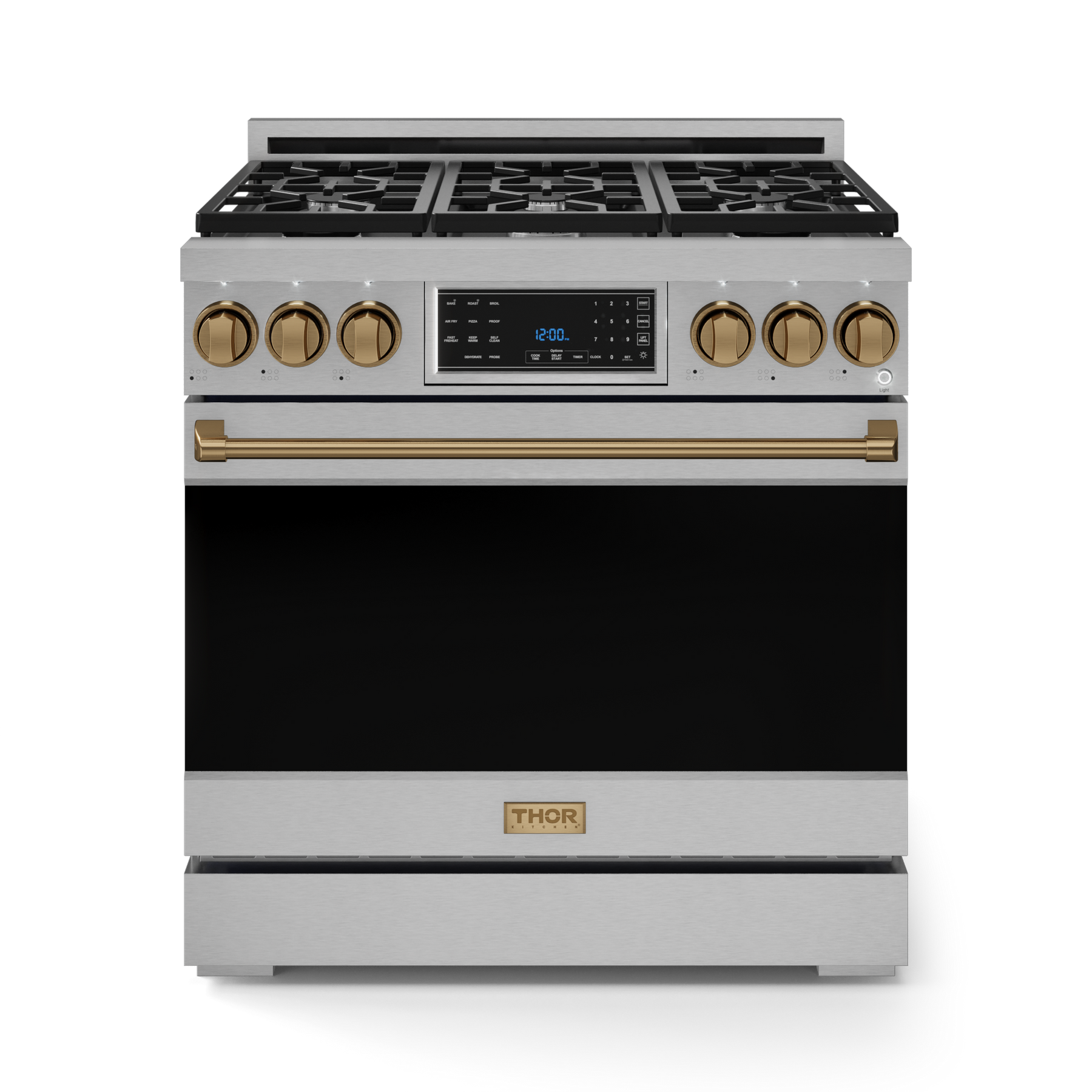 Designed for chefs who demand precision and power. With high-output burners, even heat distribution, and intuitive controls, this 36 Inch Gas range in Stainless Steel/Bronze elevates your cooking experience. Built for durability and performance, it brings restaurant-grade quality to your home kitchen, making every meal exceptional.