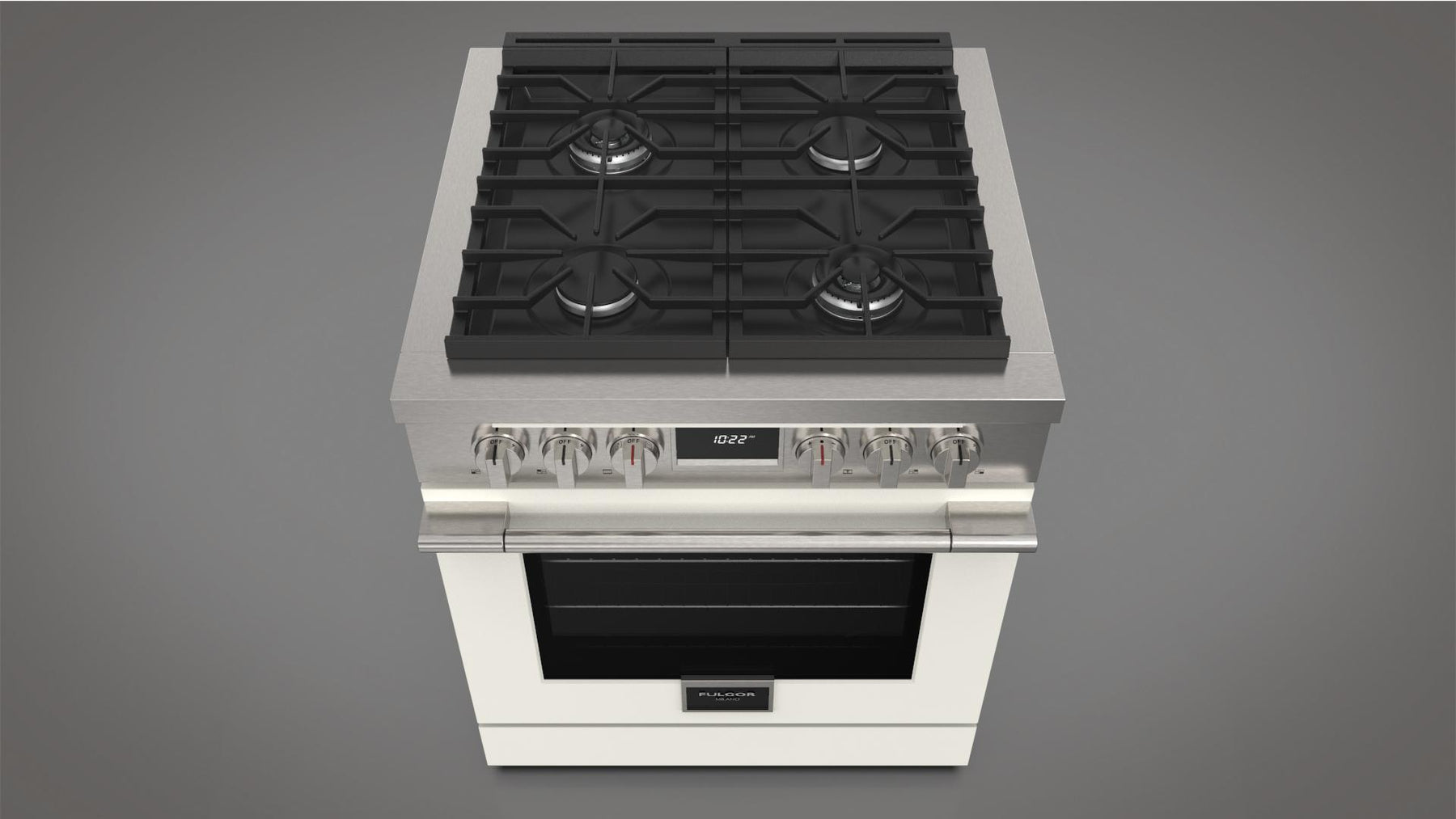 The 30" Dual Fuel range features a combination of two Crescendo burners, and two high powered sealed burners offering great performance and value. The oven features a generous 4.4 cubic feet capacity with dual convection and self-cleaning functions.