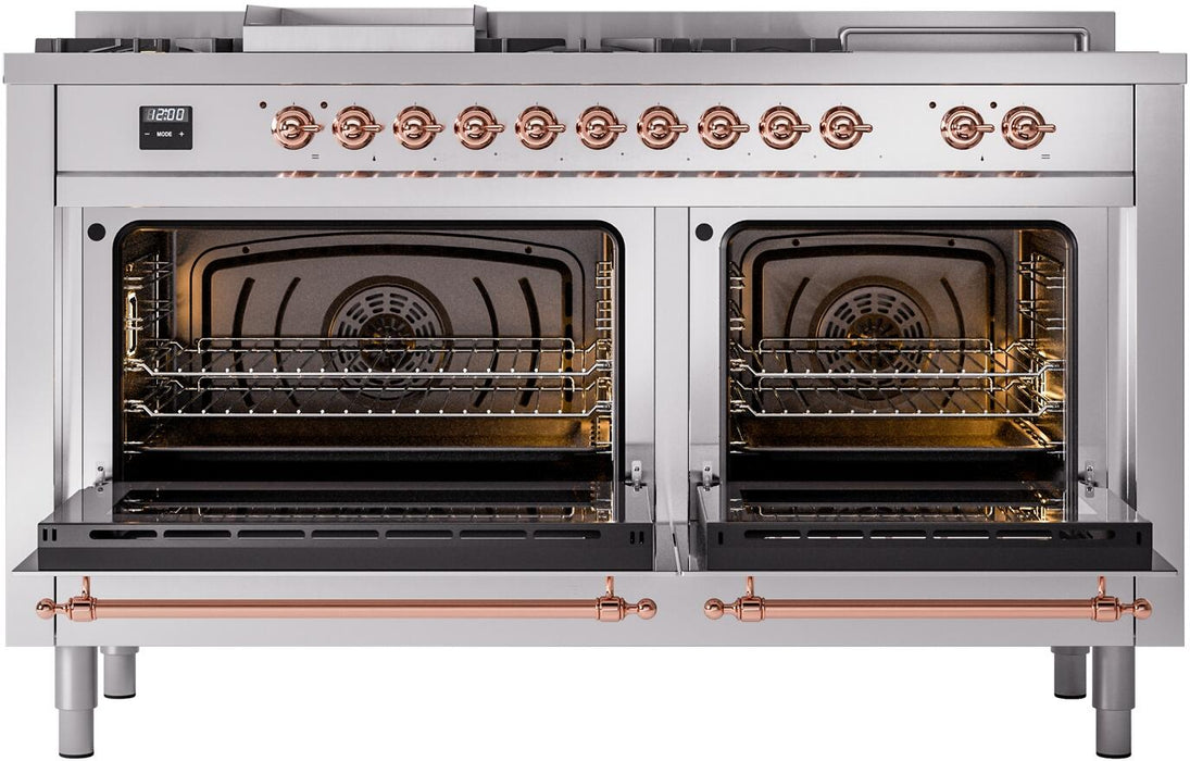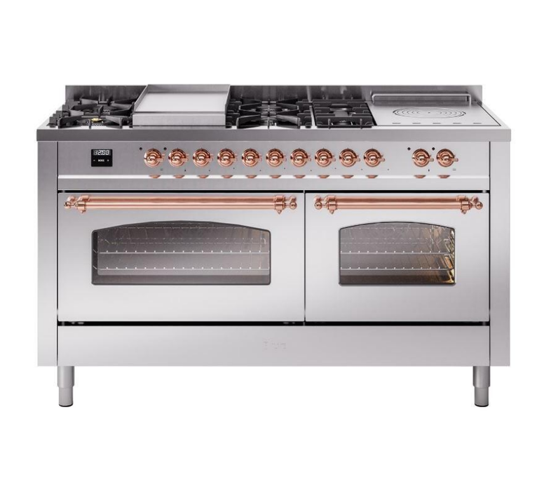 ILVE's Nostalgie II brings the ultimate cooking experience to your kitchen with many updated features that enhance the original Classic Nostalgie with Total Black Brass Non-Stick Nanotechnological Treatment, Easy Clean Enamel Oven Interior, and an updated Oven Control. This 60" dual fuel model also features 7 Burners + Griddle + French Top, a 25,000 BTU Dual Function Burner, a Simmer at 900 BTU, Triple Glass Cool Down, Updated Oven Control, and Soft Closing System.