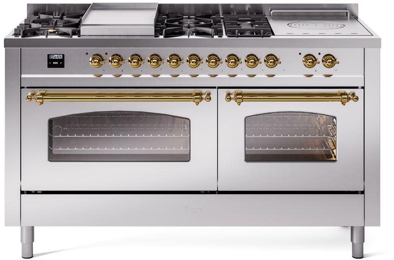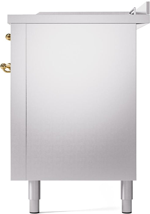 ILVE Nostalgie II 60" Dual Fuel Burner Natural Gas Range in Stainless Steel Gold Trim