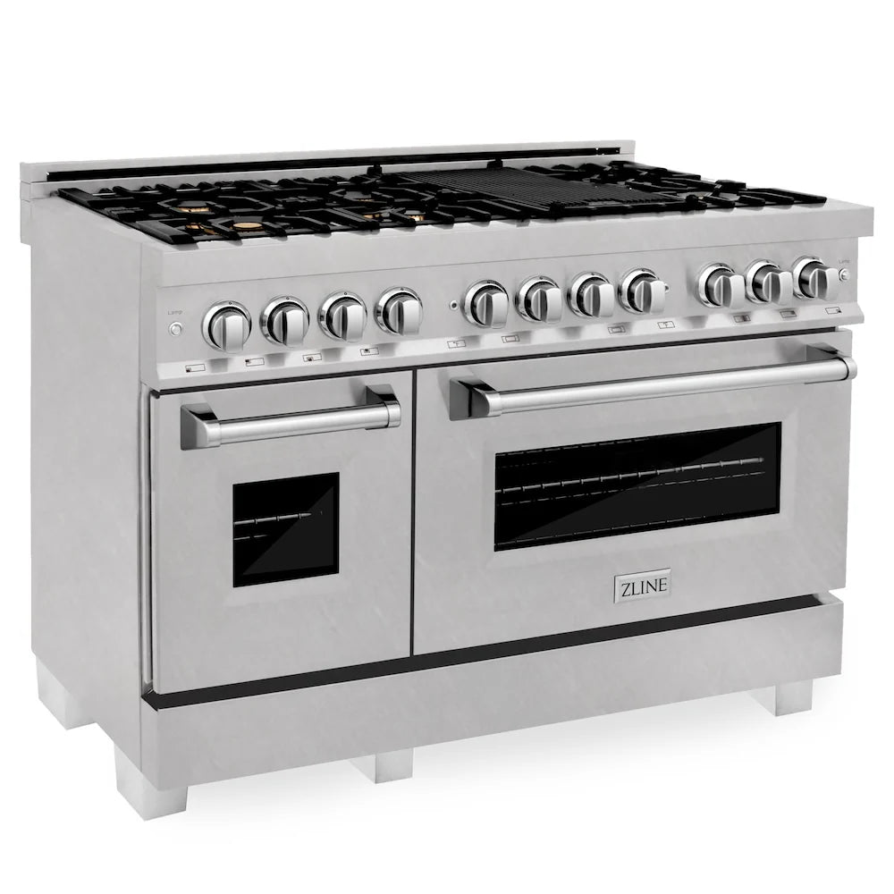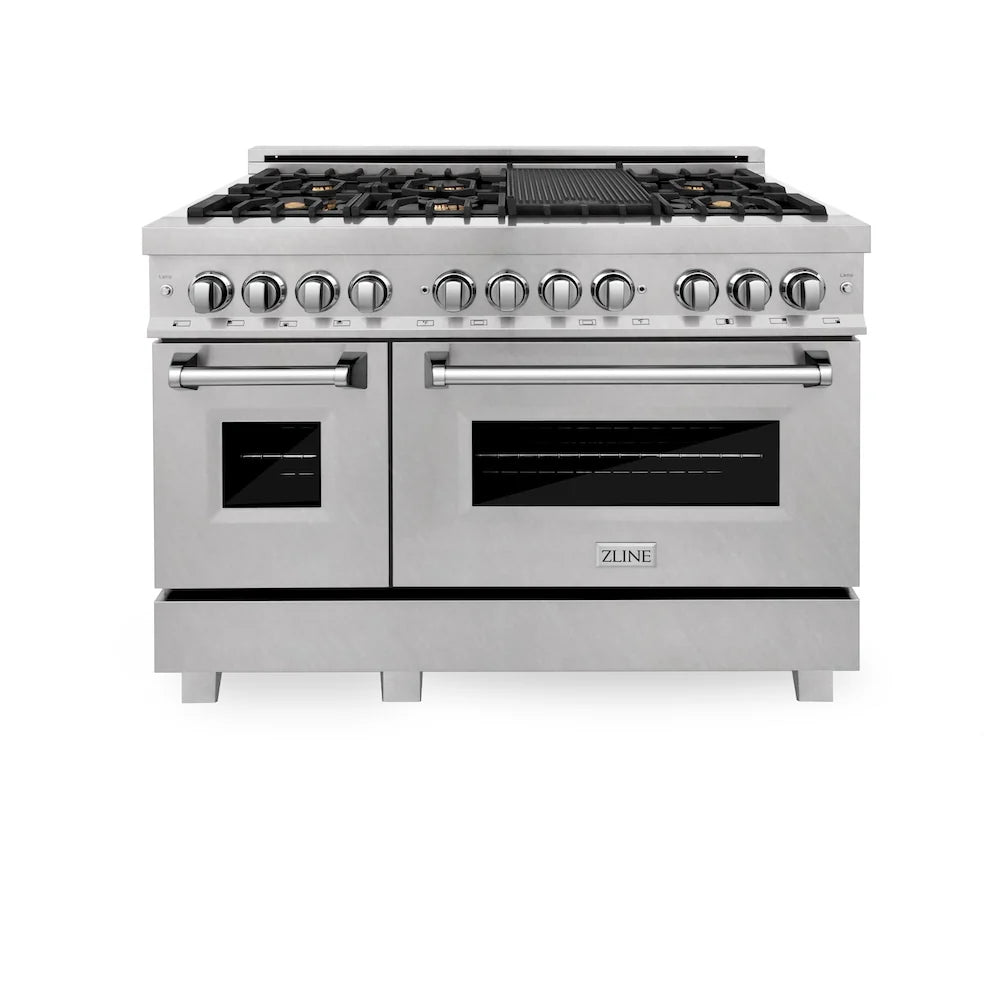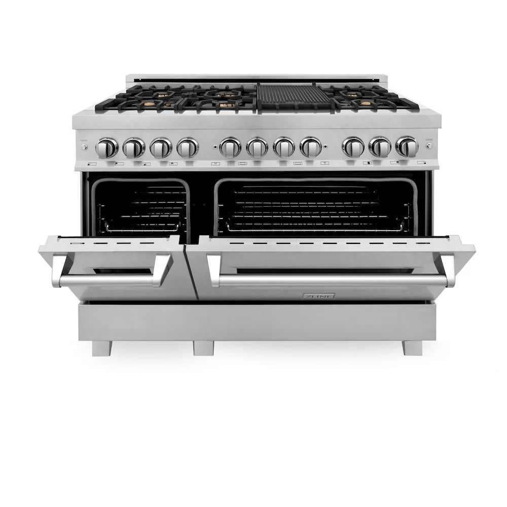 Luxury isn’t meant to be left desired—it’s meant to be attainable. The ZLINE 48 in. 6.0 cu. ft. Legacy Dual Fuel Range with Gas Cooktop and 2 Electric Ovens in Satin Stainless Steel with 6 Brass Burners (RAS-SN-BR-48) pairs a powerful gas cooktop with 6 Italian-crafted brass burners with a large electric convection oven, and a small bake and broil oven with Landscape oven door window designs. With innovative features designed to enhance your kitchen’s capability, ZLINE Legacy Dual Fuel Ranges provide a professional culinary experience by pairing unmatched performance with timeless style.