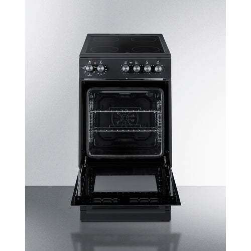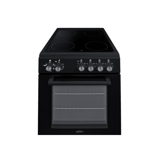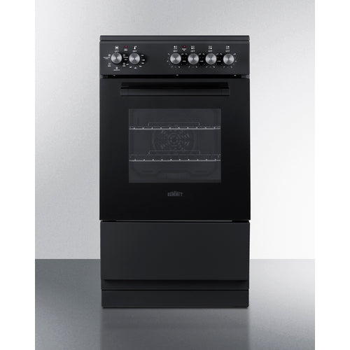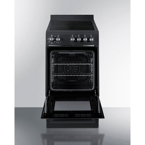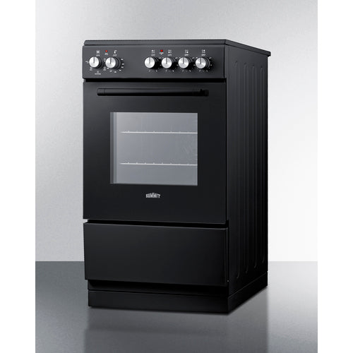 Summit's innovative series of European-made ranges offers full cooking convenience for apartments, ADUs, tiny homes, and other settings with limited kitchen space. Made in Europe, the REXT20BL is a 220V electric range sized at just under 20" wide with a depth under 24" making it ideal for L or U-shaped kitchens. For safer heating and easier clean-up, these units feature a smooth glass cooking surface. There are four 6" burners to ensure this unit can accommodate everyday cooking needs. The versatile design includes a removable 2" high matching black backguard, allowing you the choice of a standard range style or a slide-in look with a flat surface that allows you to better integrate the unit with your own backsplash design. For added space savings, the REXT20BL features a slide-out drawer, perfect for storing your pots and freeing up more kitchen space. Inside, the REXT20BL features a large 1.87 cu.ft. oven made from durable porcelain enamel and includes two sliding wire racks with five positions to let you fit various dish sizes. The large oven window provides a full view of your cooking, with an interior light that automatically turns on with the oven. The oven door is constructed from low-e glass in black for a modern look, with a sleek black finish on the cabinet, storage drawer, and manifold. The REXT20BL comes with multiple cooking functions to cater to various cooking methods. The oven settings include: defrost, static cooking, convection(fan), broiling, and even a broiling + convection(fan) function. All cooking controls meet ADA guidelines since each is located upfront, eliminating the danger of reaching across the cooktop surface. For this unit in stainless steel or white see models REXT20SS and REXT20W. For a 24" wide unit, see model REXT24BL. Browse our website to view our complete collection of ranges and cooking appliances at summitappliance.com.