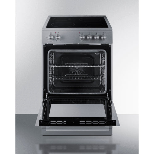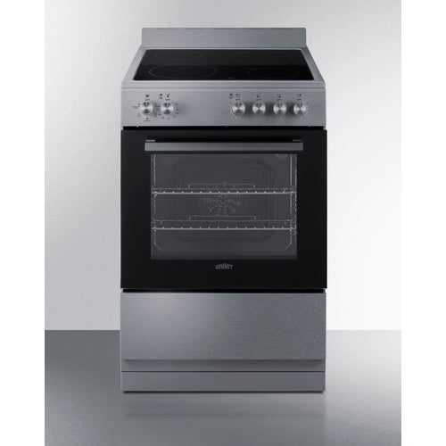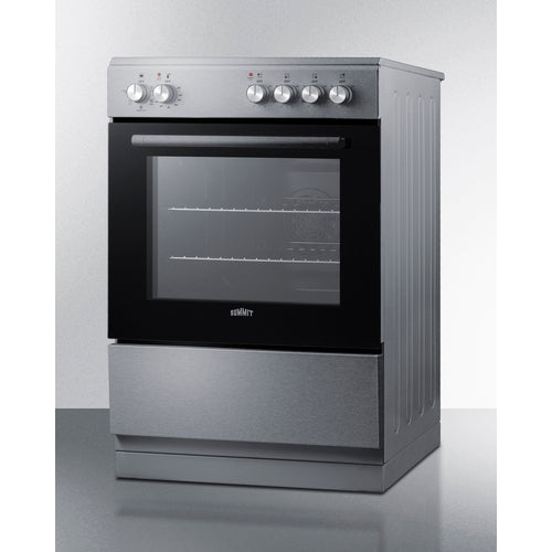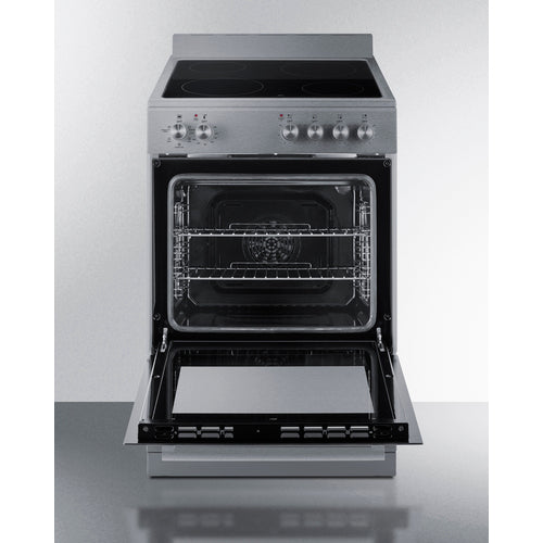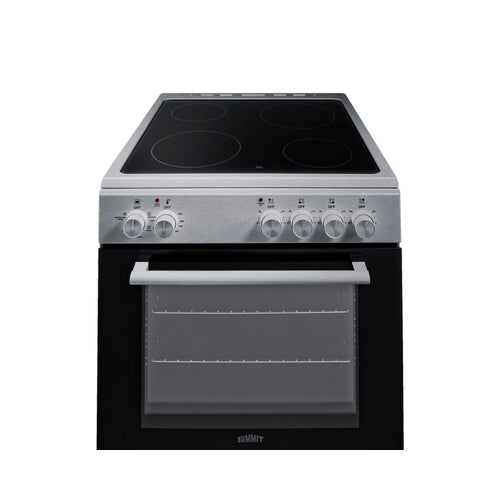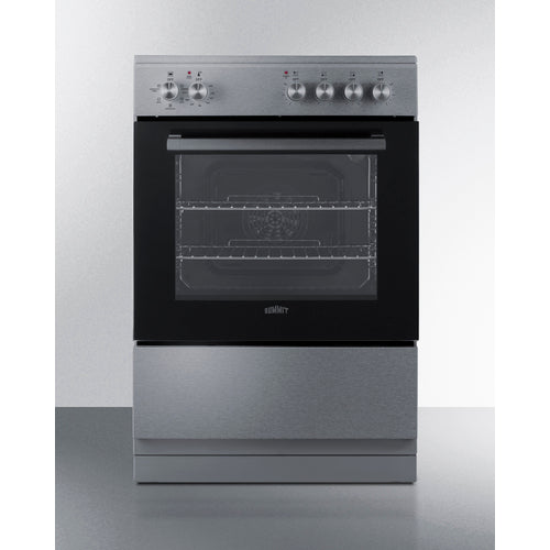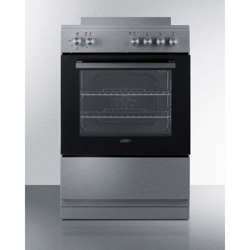 Summit's innovative series of European-made ranges offers full cooking convenience for apartments, ADUs, tiny homes, and other settings with limited kitchen space. Made in Europe, the REXT24SS is a 220V electric range sized at just under 24" wide with a depth under 24" making it ideal for L or U-shaped kitchens. For safer heating and easier clean-up, these units feature a smooth glass cooking surface. There are two 6" burners and two 8" burners to ensure the REXT24SS can accommodate various cooking needs. The versatile design includes a removable 2" high matching stainless steel backguard, allowing you the choice of a standard range style or a slide-in look with a flat surface that allows you to better integrate the unit with your own backsplash design. For added space savings, the REXT24SS features a slide-out drawer, perfect for storing your pots and freeing up more kitchen space. Inside, the REXT24SS features a large 2.44 cu.ft. oven made from durable porcelain enamel and includes two sliding wire racks with five positions to let you fit various dish sizes. The large oven window provides a full view of your cooking, with an interior light that automatically turns on with the oven. The oven door is constructed from low-e glass in black for a modern look, with a sleek stainless steel finish on the storage drawer and manifold. The REXT24SS comes with multiple cooking functions to cater to various cooking methods. The oven settings include: defrost, static cooking, convection(fan), broiling, and even a broiling + convection(fan) function. All cooking controls meet ADA guidelines since each is located upfront, eliminating the danger of reaching across the cooktop surface. For this unit in white or black see models REXT24W and REXT24BL. For a 20" wide unit, see model REXT20SS. Browse our website to view our complete collection of ranges and cooking appliance at summitappliance.com