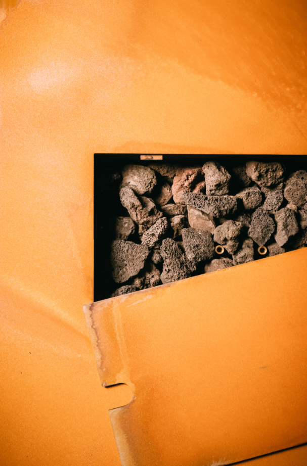 Our pieces are created using 1/4" mild carbon steel.  The steel is sandblasted and taken down to bare steel before being powder coated to help ensure a quality finish for your fire pit.