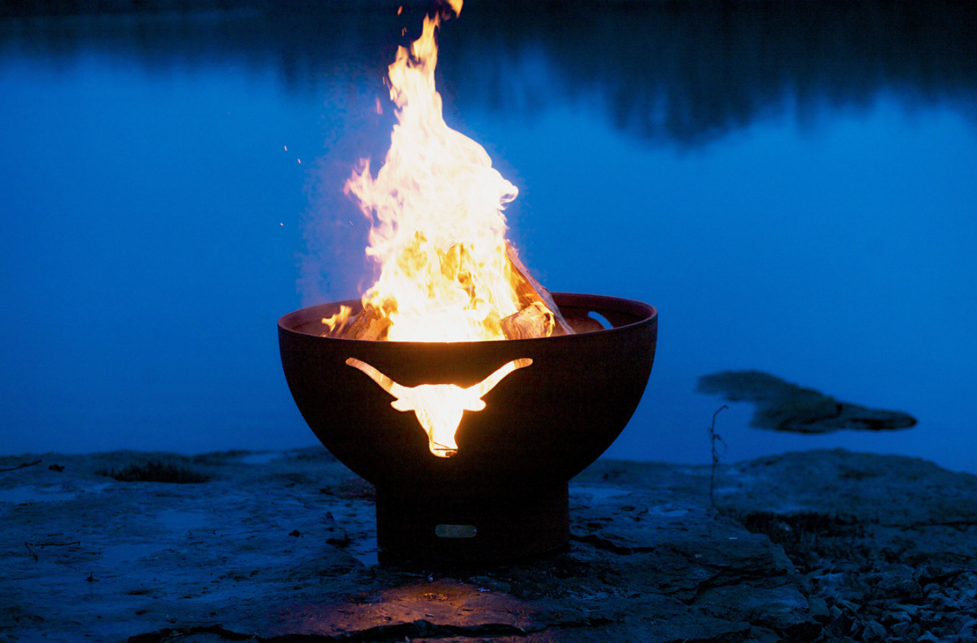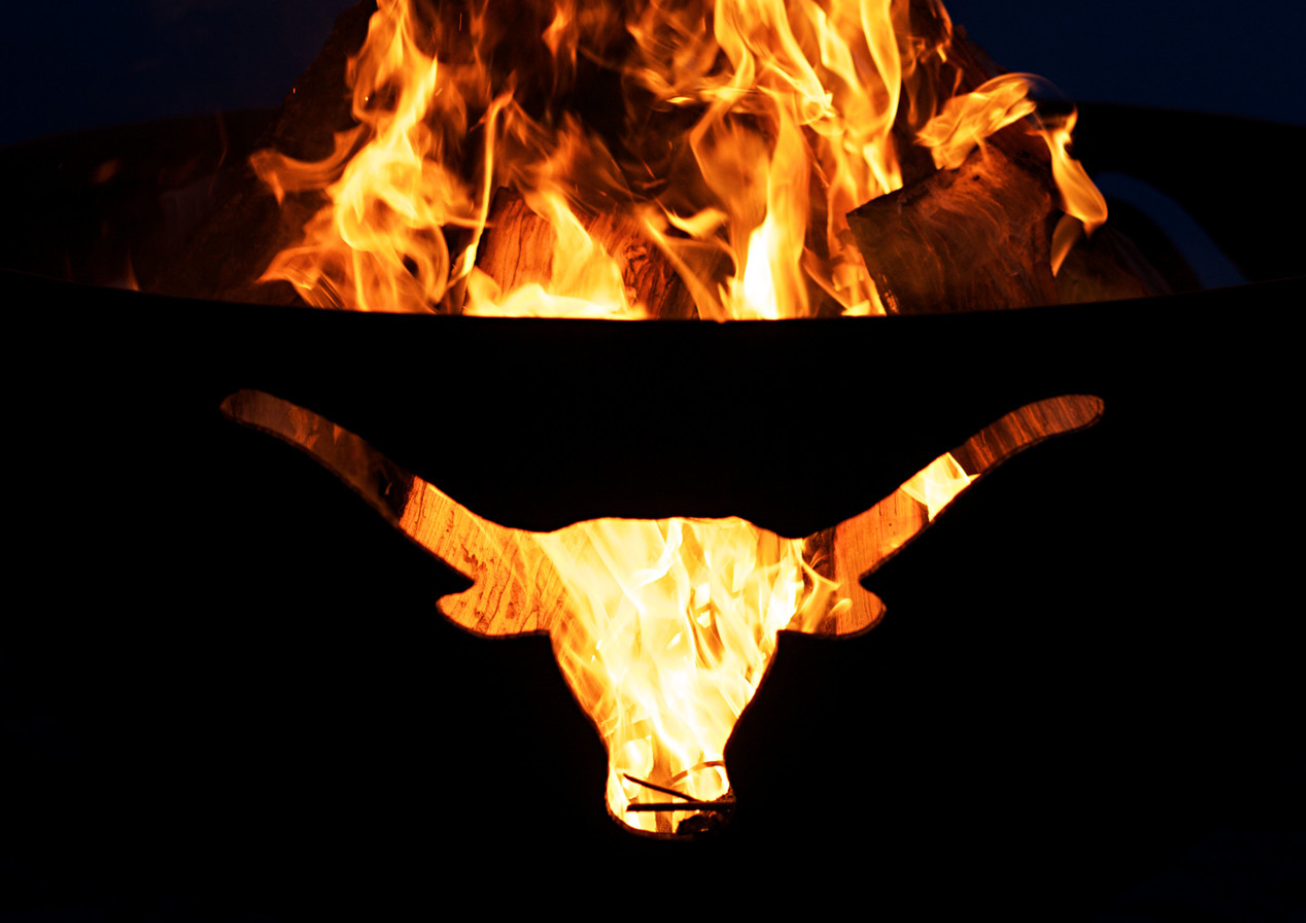 Fire Pit Art Long Horn Natural Gas Match Lit System W/ 200K BTU