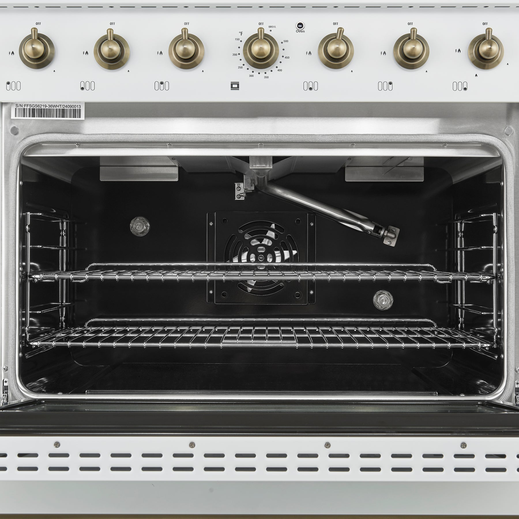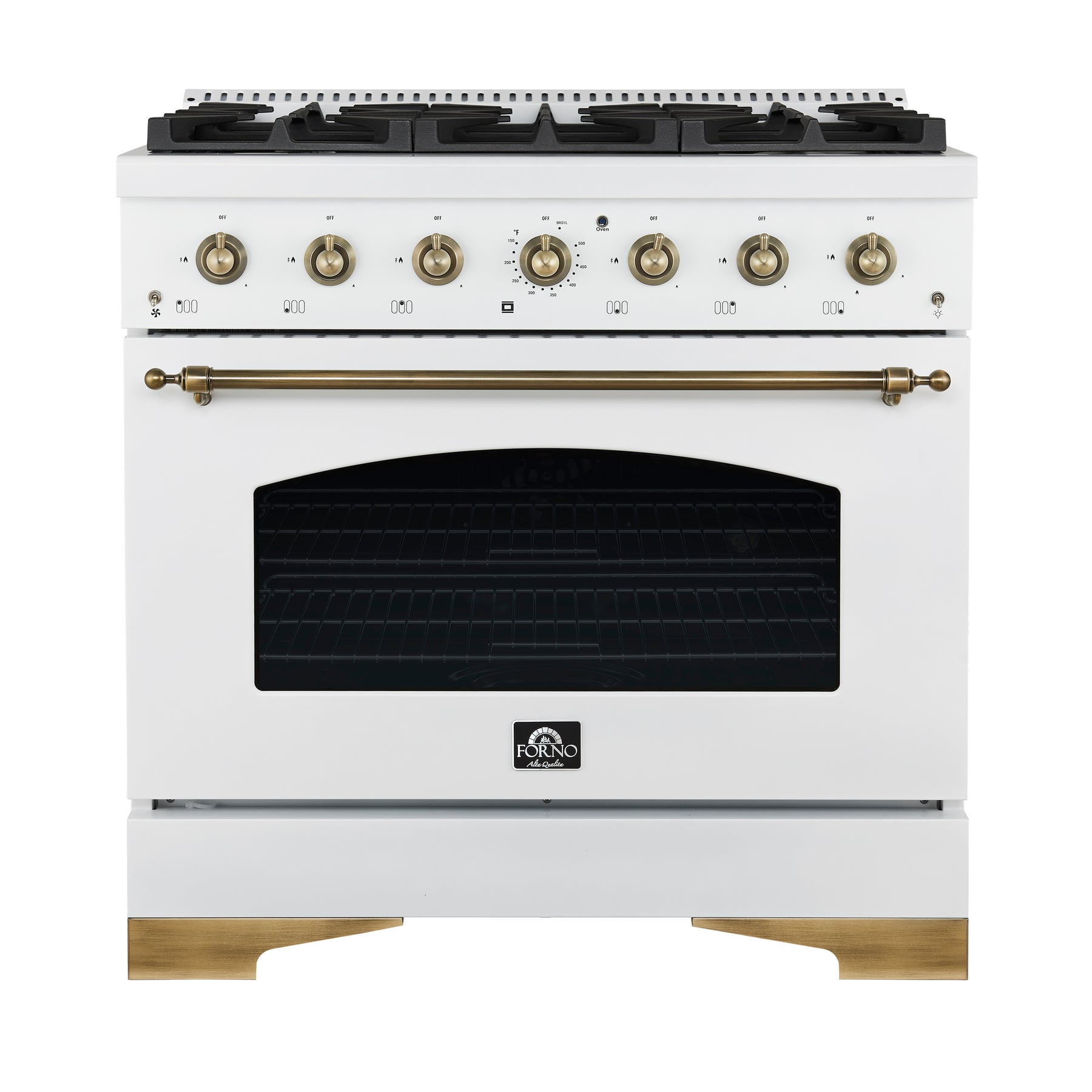 Elevate your kitchen with the stylish and high-performance Forno Antico 36" Gas Range in white, designed to bring elegance, functionality and affordability to your home. With 6 sealed burners and a total output of 71,000 BTU, it delivers the power and precision needed for any culinary challenge. The dual-ring brass burner offers up to 20,000 BTU for high-heat searing and 1,000 BTU for simmering, providing exceptional control. Its spacious 4.5 cu. ft. convection oven ensure even baking and roasting. With its elegant white finish and antique brass accents, the Antico exudes sophistication, while the cast-iron grates provide lasting stability and durability. The recessed enamel cooktop makes cleanup a breeze, combining style with practicality. Whether you're preparing a weeknight dinner or hosting a dinner party, the Antico offers the versatility and power to handle it all, while enhancing the beauty of your kitchen.