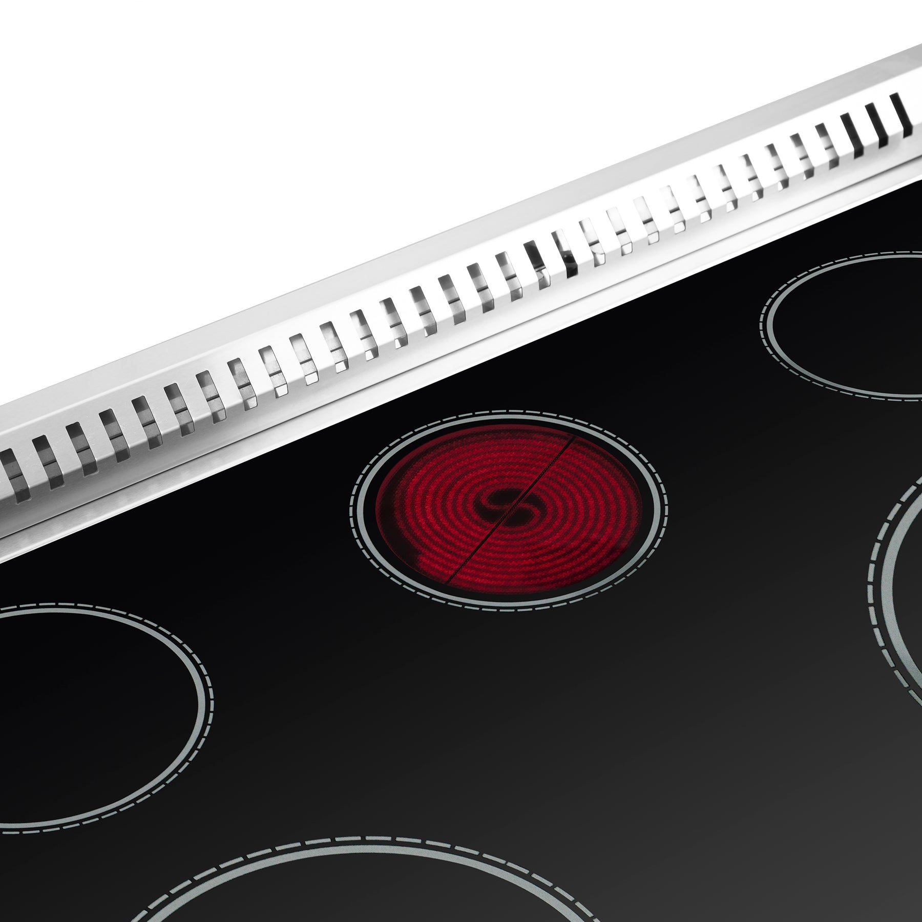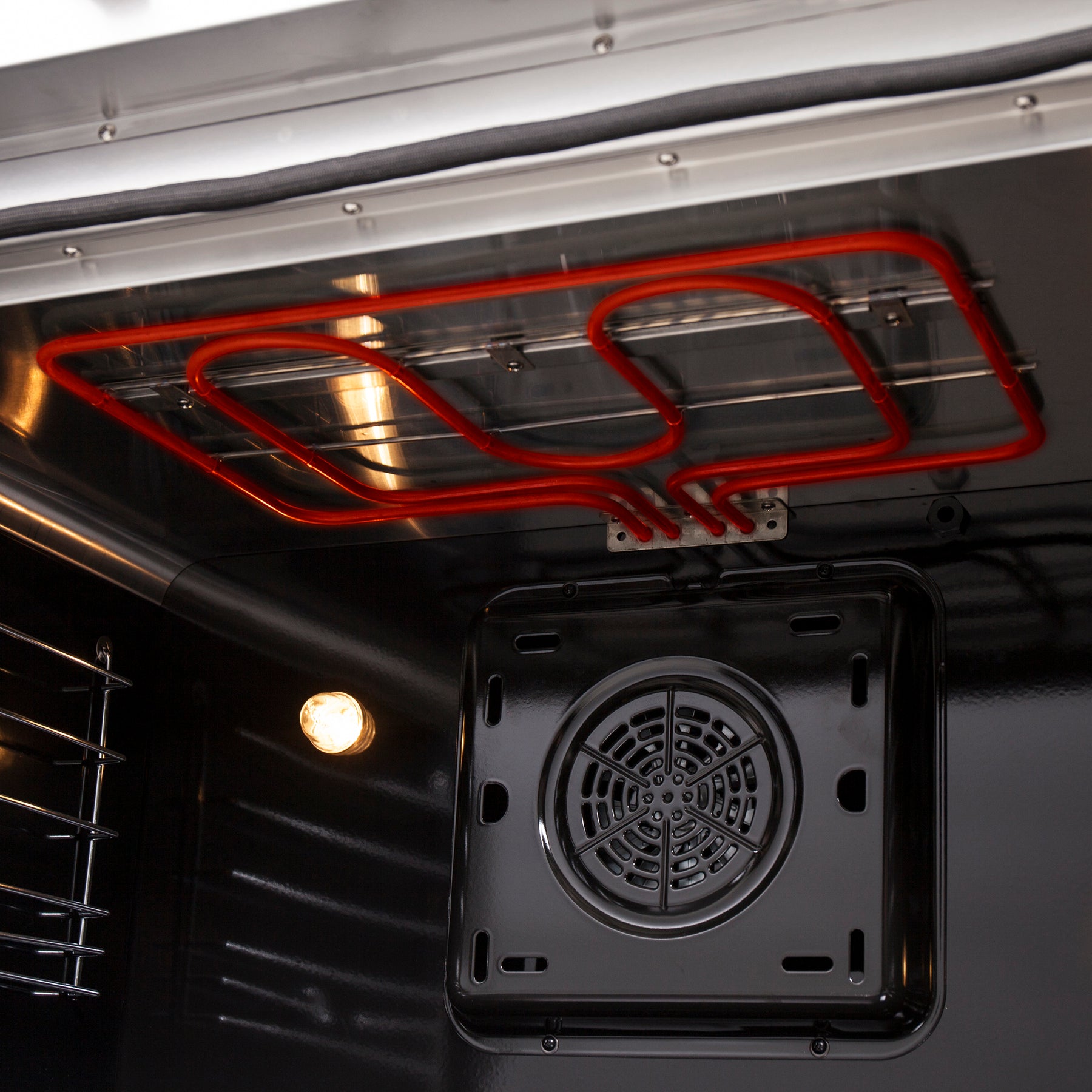 The Forno Galiano 36 Inch French Door Alta Qualita Pro-Style Freestanding Electric Range elevates your home kitchen with professional styling and enduring quality, featuring a robust stainless-steel design. The french door design will make your everyday cooking task easier allowing up to 12 Inch opening for an easy access of your oven. Boasting 5 radiant elements, the cooking surface delivers a total output of 7,700 watts. The 5.36 cu. ft. capacity oven enhances cooking flexibility with a combined broil and bake output of 4,800 watts, complemented by a 1,500 watts true convection fan for precision. This unit includes 2 chromed oven racks, an Air Fryer kit, and a 4-prong power cord (NEMA 14-50P), providing both versatility and convenience.