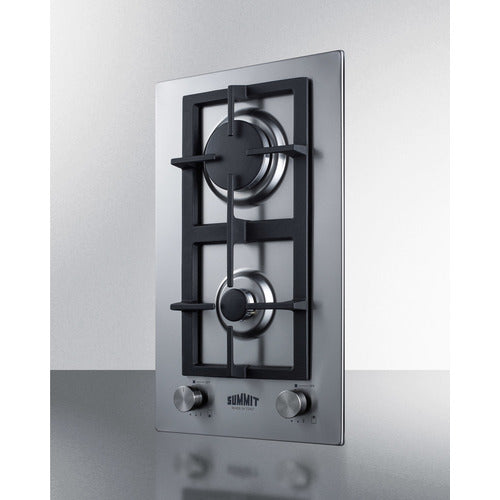 Summit’s 'Made in Italy' LP gas cooktops offer a powerful performance in a durable, safe, and stylish design. The GCJ2SSLP is a two-burner gas cooktop with a 304 grade stainless steel surface for added durability. Its slim design makes it perfect for tiny kitchens, apartments, yachts, boats, and similar environments. Heavy duty brass and aluminum knobs are located at the front of the unit for easy access and require a gentle push-to-turn motion to ignite. Thermocouple flame protection ensures the gas turns off if the flame is extinguished. A continuous cast iron grate allows for easy movement between burners for efficient cooking while using multiple cooking vessels. The smooth edge surface adds safety in a stylish look. Featuring two gas burners manufactured by Defendi, this cooktop affords versatile cooking options in a slim design. The top 10,000 BTU rapid burner is ideal for boiling water or cooking larger dishes while the bottom 3,400 auxiliary burner works well for precision heating and cooking. The GCJ2SSLP uses electronic spark ignition, with a pre-installed 115V 3-prong cord included. This cooktop is preset for use with propane. We include a conversion kit that allows you to switch the connection from LP to natural gas. The 'Made in Italy' collection has gas cooktop options to fit any cooking need, including one, two, four, and five burner choices. Browse our website to explore the full collection.