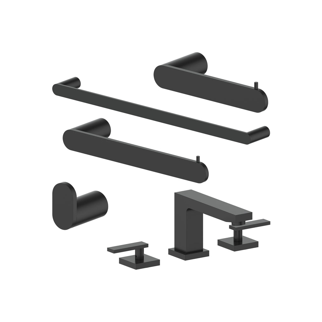 ZLINE Crystal Bay Bathroom Package with Faucet, Towel Rail, Hook, Ring and Toilet Paper Holder in Matte Black (5BP-CBYACCF-MB)