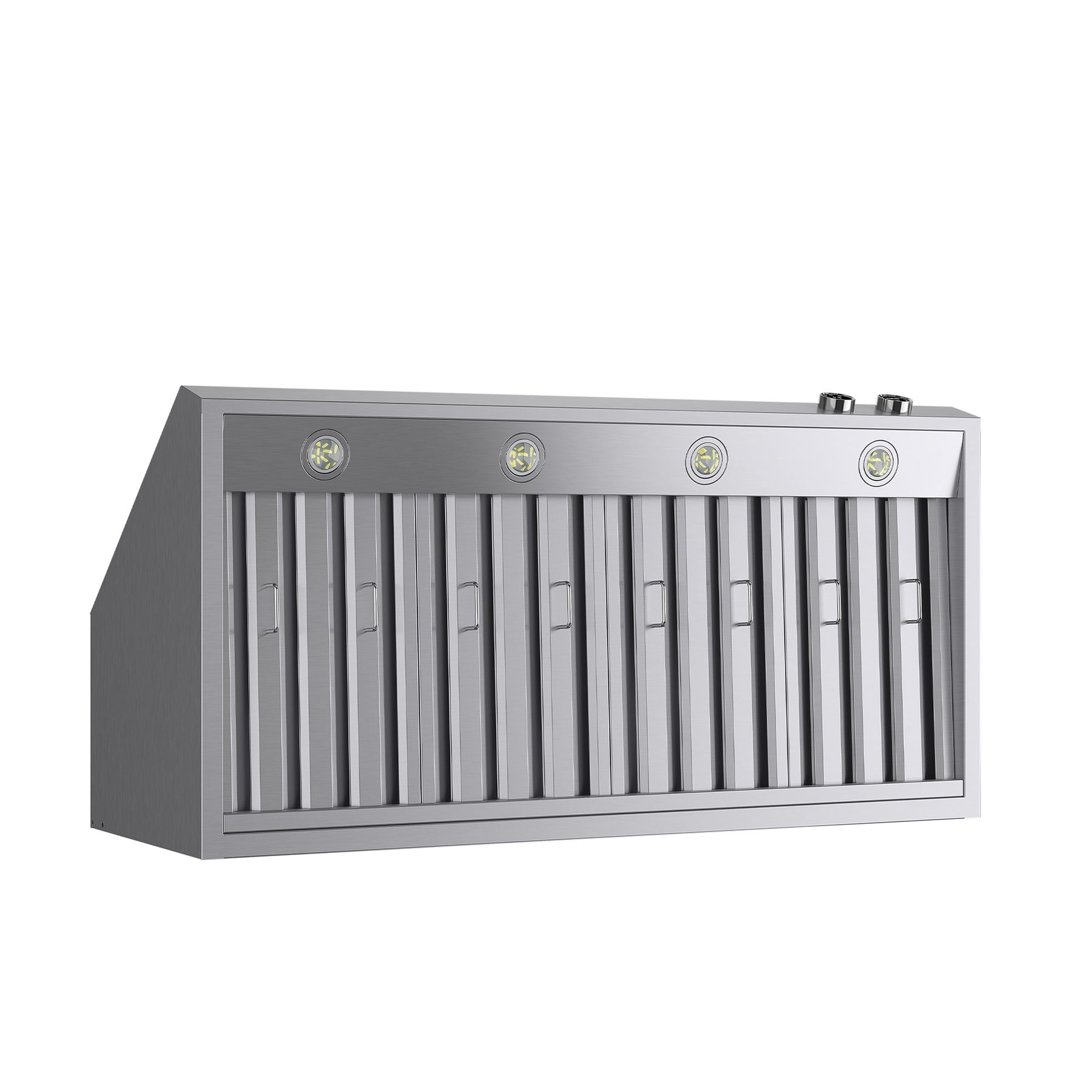 - Equipped with four 1.5 Watt LED lights, this seamless design pro-style range hood will give you better visibility while cooking and enhance the look of your pro-style Kucht range