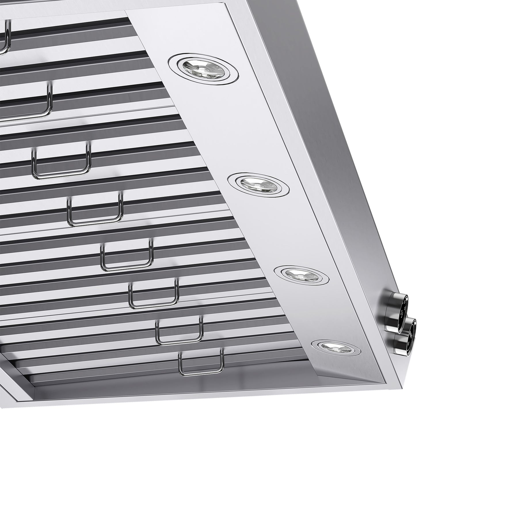 - This stylish range hood comes with four stainless steel baffle filters that are also dishwasher-friendly