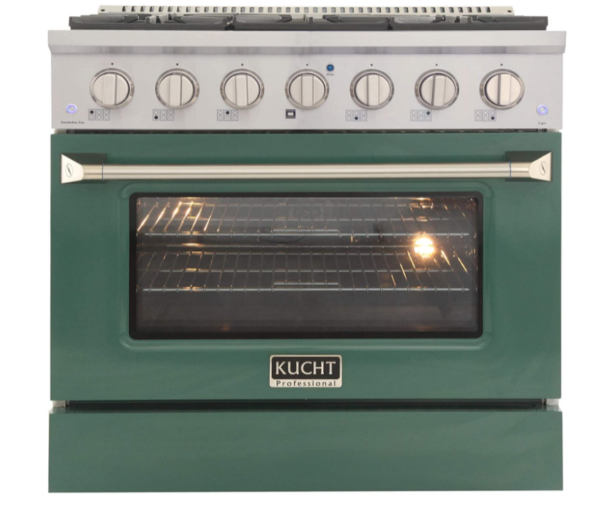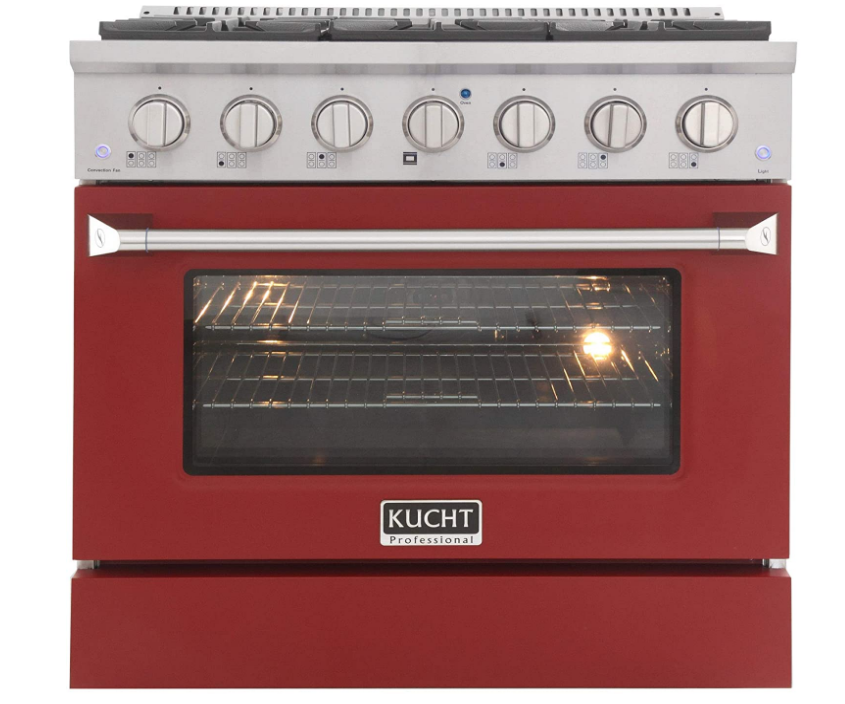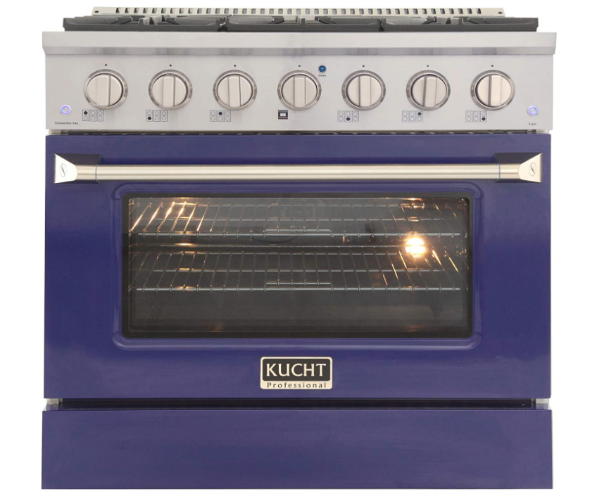 36” Pro Class Kitchen Range The super powerful 20.000 BTU Rocket Power Burner is perfect for using a small to medium WOK or Cooking a Paella, but the main feature of this series is the ability to change the look of your kitchen in less than 2 minutes by changing the color of the oven door and the kickplate. You can get a new color set (oven door and kickplate) for a really low price and change it whenever you like. The currently available colors are Red, Blue, White, Green, Black, and Silver… 4th of July? Christmas? Your kitchen decor will be ready in 2 minutes!