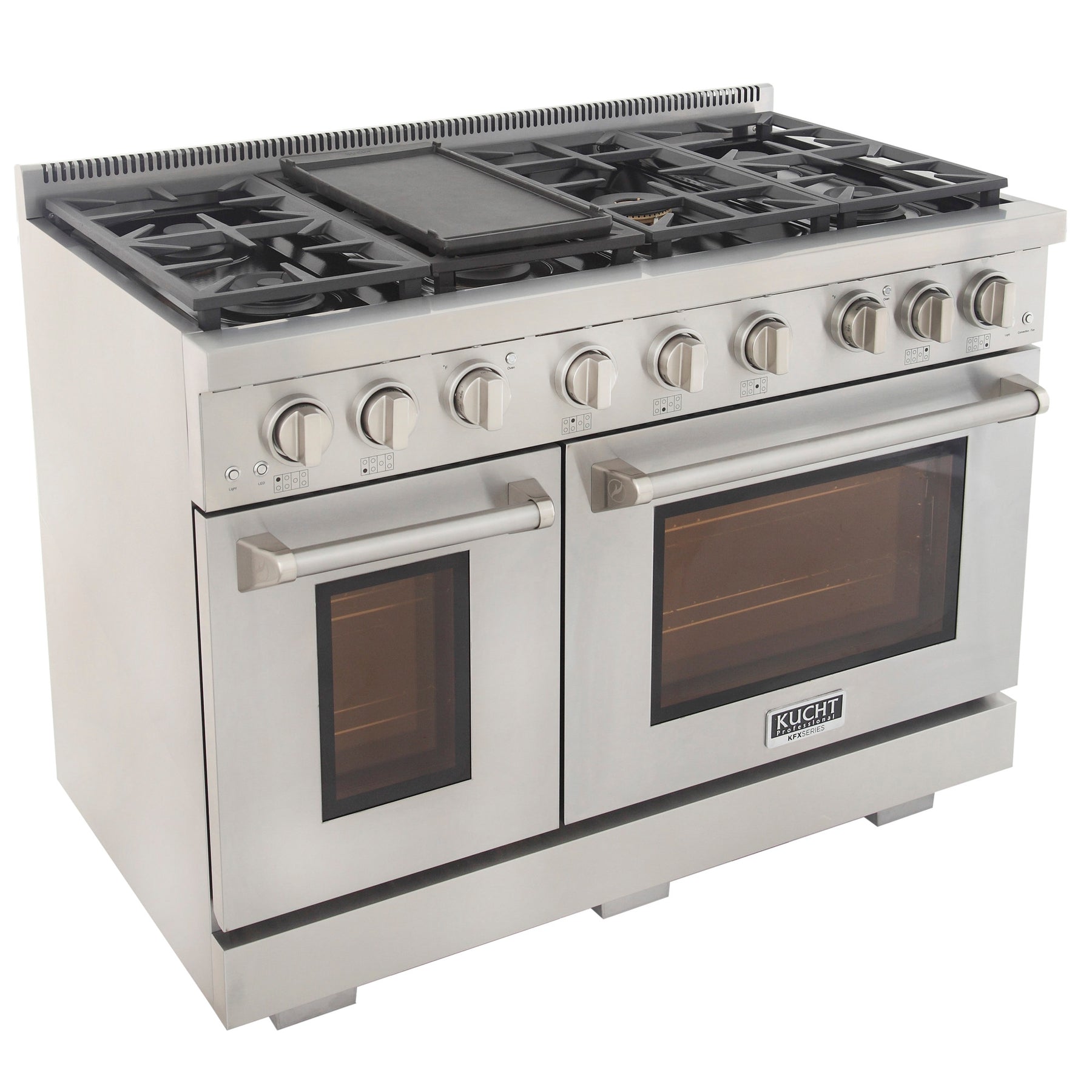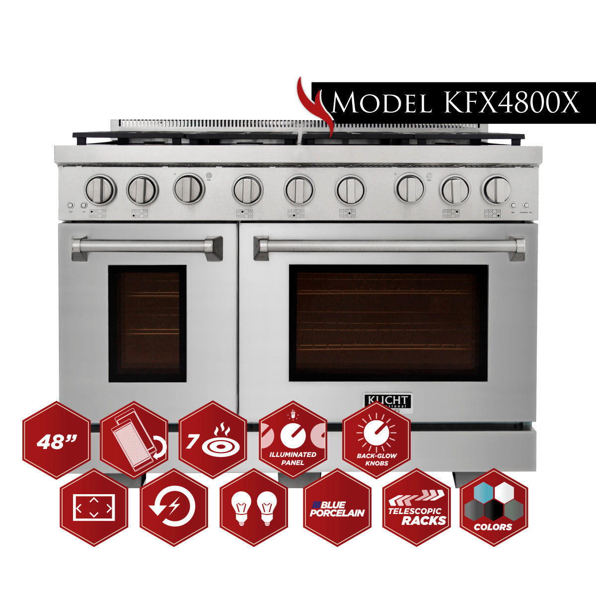 This high-powered model was designed to function with Kucht’s Ignition, using an auto-reignition system that ignites every time with ease, and automatically reignites any time a flame burns out. The range top’s continuous grates covers the 7 burners and allow you to move your kitchen utensils safely and with ease. You can slide the heaviest pots and pans on the rails without even having to lift them. The new KFX4800X Gas Range offers massive power and flexibility in a small-size design to bring the most elaborate recipes to life in your own kitchen. This extremely powerful and easy-to-use Gas Range will allow you to cook any recipe with the same quality, precision, and speed of a chef.