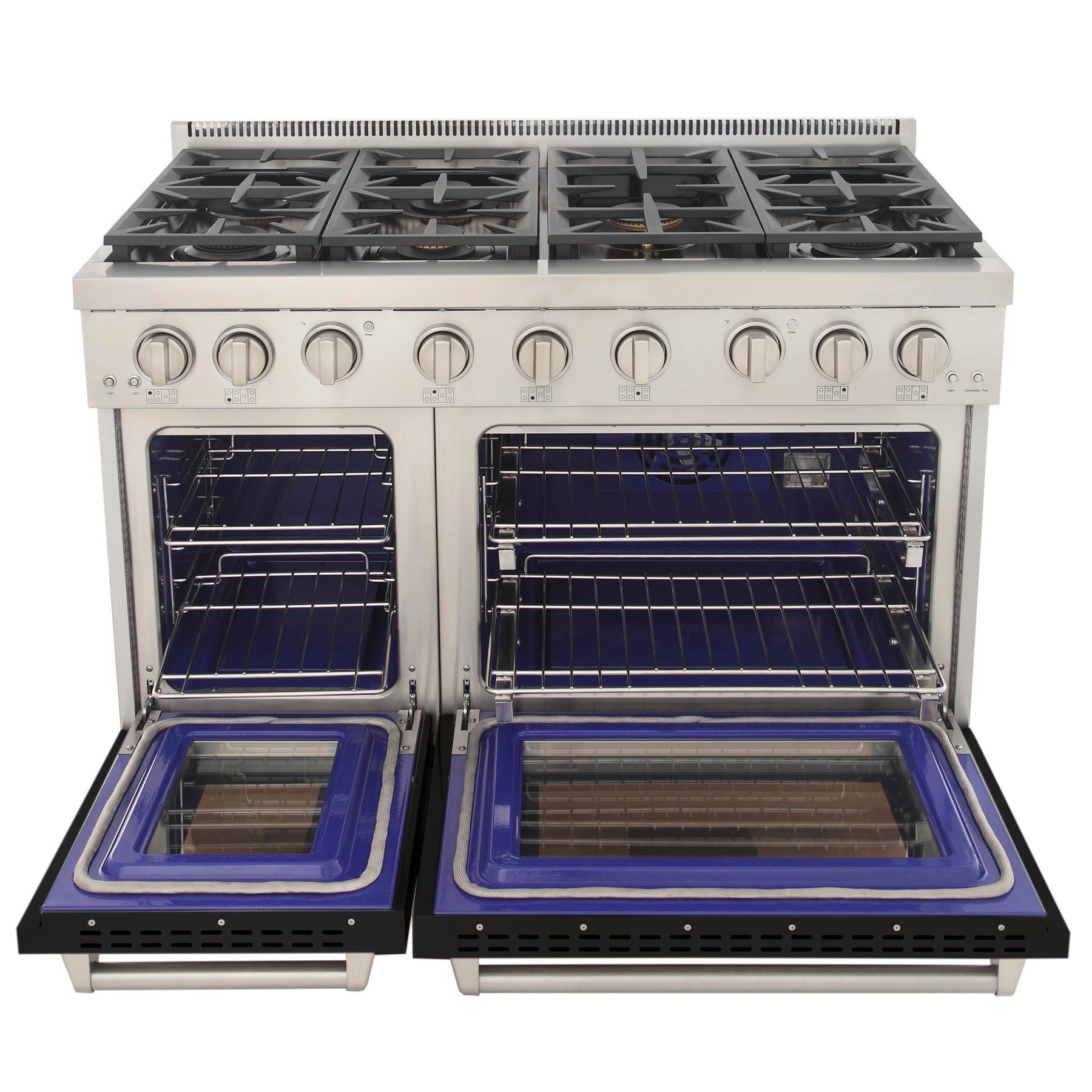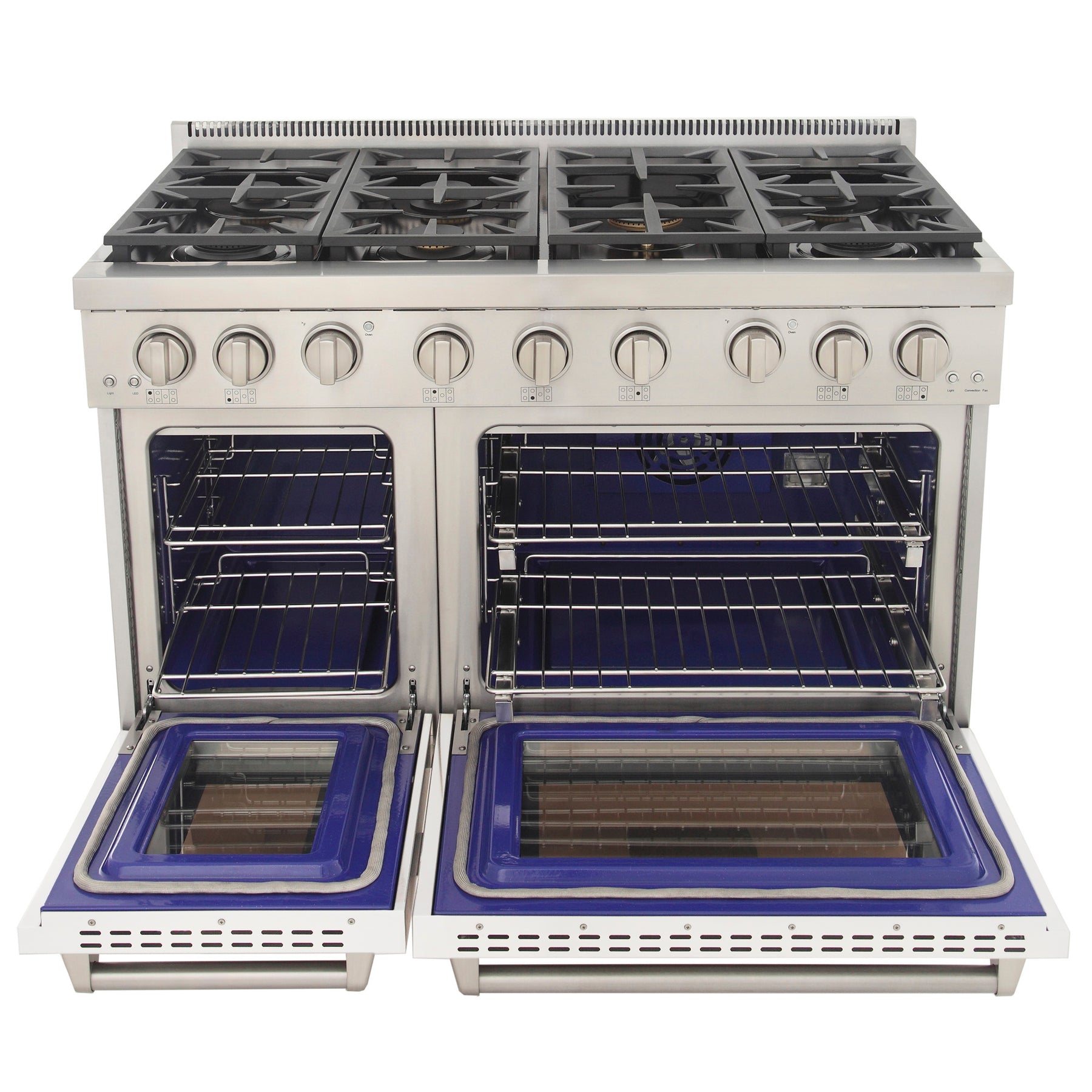 New KFX-X series: New True Simmer Burners: Simmering tenderizes tough cuts, enhances flavors, and gradually thickens sauces and stews. Combining design, high performance, and safety. Resistant, intuitive, modern, and elegant, the 48 in. 7-burner model provides amazing capacity for its size. Our new KFX4800X is a gorgeous focal point for your kitchen and allows a combination of burners, with high BTUs for fast stir-frying, and with super-low BTUs for simmering, to help you get that perfect flavor. One of the featured burners is a heavy-duty 25,000 BTU Ekinox Burner that provides evenly distributed heat and plenty of power to use a home WOK or medium Paella Pan with professional results. The oven interior is covered with fine blue porcelain, and the heavy-duty stainless steel racks are adjustable and telescopic, creating ease of use and even easy to clean.