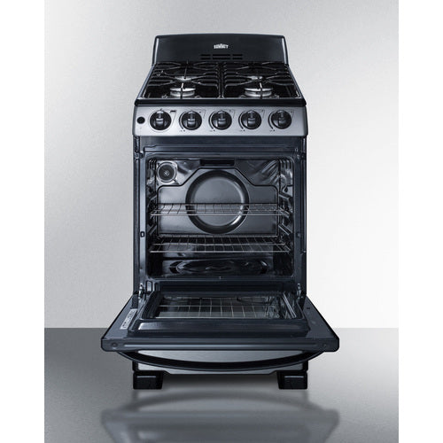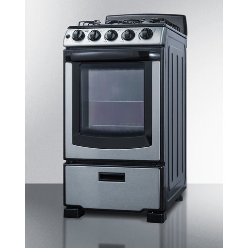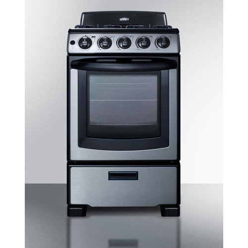 SUMMIT's line of slim-fitting gas ranges made in North America brings quality and value to space-challenged kitchens. The PRO201SS is sized at just 20" wide for an easy fit in smaller kitchen spaces. It comes in a stainless steel and black finish for a professional look to match a variety of styles. The stainless steel oven door includes a large window and easy-grip handle for cooking convenience.This model utilizes electronic spark ignition and features four sealed burners for safer, cleaner cooking. One 12,000 BTU burner offers faster cooking for larger vessels, with two standard 9,500 BTU burners and a smaller 5,000 BTU burner for lower heating needs. The high backguard helps to protect your walls from spills, with enamel grates for lasting durability. The control panel includes upfront push-to-turn burner knobs for added safety. Inside, the PRO201SS features a 2.3 cu.ft. porcelain oven. Two slide-out racks include a safety brake system, with four position options to let you accommodate all sizes and shapes. The broiler is located in a lower drop-down compartment. We include a two-piece broiler pan with lid. The unit ships set for natural gas but includes its own LP kit for aftermarket conversion. With its clean look and unique size, the PRO201SS is the ideal gas range for apartment and small home kitchens. NOTE: This unit replaces model PRO200SS but features an upgraded sealed burner design.