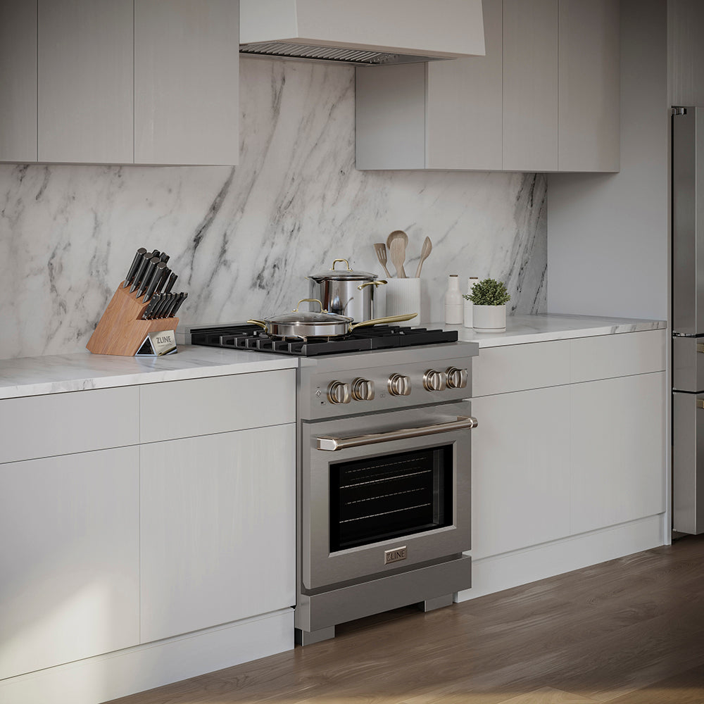 Luxury isn’t meant to be desired—it's meant to be attainable. The ZLINE 30 in. 4.2 cu. ft. Paramount Dual Fuel Range with 4 Burner DuoPro™ Cooktop and Electric Convection Oven in Stainless Steel (PSDR30) features a high-powered gas cooktop with 4 hand-crafted Italian dual-ring brass burners and a versatile electric convection oven allowing you to master every meal. Double your cooking power on every burner with a DuoPro™ Cooktop that delivers ultimate flame control flexibility and unprecedented culinary confidence.