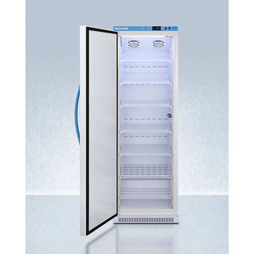 Accucold's Performance Series includes BOD refrigerated incubators designed to provide reliable cold storage in water treatment centers, environmental laboratories, and other research facilities. Model ABOD15LHD is a 15 cu.ft. refrigerated incubator. The adjustable control range allows you to manage the temperature between 4Âș and 60ÂșC (39.2 to 140ÂșF) and comes preset at 20ÂșC. The microprocessor temperature controller is externally located to minimize door openings, helping to protect stored contents from ambient temperature. The buffered temperature probe is encased in a glycol-filled bottle to better simulate temperature of the stored product, with an additional sensor that reads air temperature to ensure superior temperature control. The current and min/max temperature display is viewable in Celsius or Fahrenheit to the nearest tenth of a degree. The audible and visual temperature alarm sounds if the unit's interior goes out of range. Additional alarms include a power failure alert, door open alarm, and sensor failure alarm. This unit is equipped with remote alarm contacts in the rear and a 1/2" probe port on the right side to accept additional monitoring devices. It comes with a hospital grade cord with a green dot plug for added safety in high traffic laboratory and research areas. Inside, the ABOD15LHD utilizes adjustable cycle defrost operation to avoid temperature spikes. Optimized forced air cooling with one internal fan ensures excellent temperature stability and uniformity with rapid recovery after door openings. The adjustable plastic-coated wire shelves can be positioned at 1/2" increments to accommodate virtually any sized bottle. This unit includes LED internal lighting with an on/off rocker switch so you can ensure the interior contents are not unnecessarily exposed to light. The interior is constructed from white powder coated metal to ensure added durability and better temperature retention. This refrigerated incubator comes in a white cabinet finish with a blue accented control panel. The factory-installed antimicrobial handle is powder-coated with naturally occurring silver ions, which help to reduce the spread of germs, allowing for a safer, cleaner user experience. The door ships with a left hand swing and self-closing function. This model includes a factory-installed lock and ships with two keys for staff use. Powerful magnetic gaskets ensure a positive seal. Designed with hydrocarbon refrigerant, the ABOD15LHD provides an energy efficient solution to water storage. Additional size are available, as well as upgrades including digital data loggers, keyless entry locks, and more. Browse the complete Accucold lineup at accucold.com.