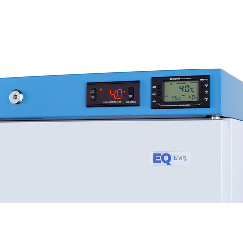 EQTemp introduces a new series of NSF/ANSI 456 certified medical refrigeration designed to store a variety of materials in healthcare facilities. Model ACR1601WNSF456LHD is an upright 15.53 cu.ft. all-refrigerator. It features a clean white exterior and a blue-accented control panel. The solid door is equipped with a self-closing mechanism to help protect stored items from being overexposed to room temperature. A factory-installed lock offers added security, and the hospital-grade cord with a 'green dot' plug ensures a secure connection for high-traffic areas. This unit features a front-breathing design for safe built-in installation under counters. The fully finished cabinet also allows freestanding use. The ACR1601WNSF456LHD includes an external readout of the interior temperature, as well as the high/low temperature as required for data records. The buffered temperature probe is encased in a bottle filled with glass beads for improved accuracy and calibrated to NIST standards in our in-house ISO/IEC 17025:2017 certified laboratory. The digital temperature controls allow you to set the interior between 2 and 8ÂșC. An audible alarm sounds if the temperature goes out of range. We also include a pre-installed 3/8" access port for users to add their own monitoring equipment if preferred. The interior includes one wire shelf in the center to hold the temperature probe, as well as additional adjustable shelves to accommodate different sizes. Internal LED lighting provides an efficient and convenient view. Automatic defrost reduces user maintenance and an internal fan ensures powerful temperature recovery after door openings. This unit ships with a left-hand door swing (for a right-hand version, see model ACR1601WNSF456). EQTemp's series of ACR refrigeration is certified to the NSF/ANSI 456 Vaccine Storage Standard. All models feature hydrocarbon refrigerant for a greener footprint. Additional sizes are available, as well as more advanced cold storage equipment purpose-built for laboratory and life science storage. Browse the full product line to explore our extensive selection. Note: EQTemp's ACR Series refrigerators are intended for a wide variety of healthcare storage applications. Storage of high-value vaccines, life science materials, and medical/clinical biologicals require a product offering tighter temperature control and/or alarms, monitoring, and backup. For these applications, browse Accucold's purpose-built PHARMA-VAC line or contact our product specialists at 1-888-4-MED-LAB.