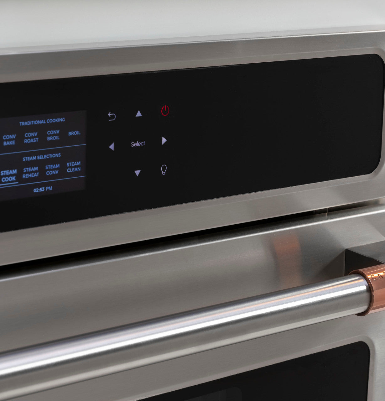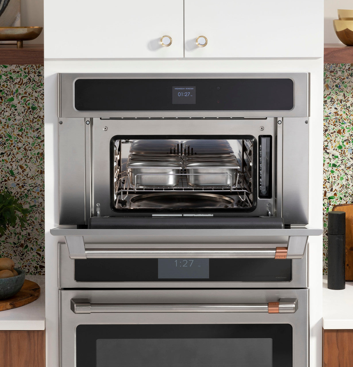 Delicious and healthy are always a pair with a CAFÉ™ Steam Oven crafted to deliver stunning meals. It works by combining convection baking, broiling or roasting with constant steam. The result? Perfect texture no matter the food. And when it comes to pulling off steamed staples like vegetables, rice, quinoa and even delicate meats, pre-programmed selections eliminate guesswork. Of course, it’s all available in signature CAFÉ™ finishes and interchangeable hardware combinations.