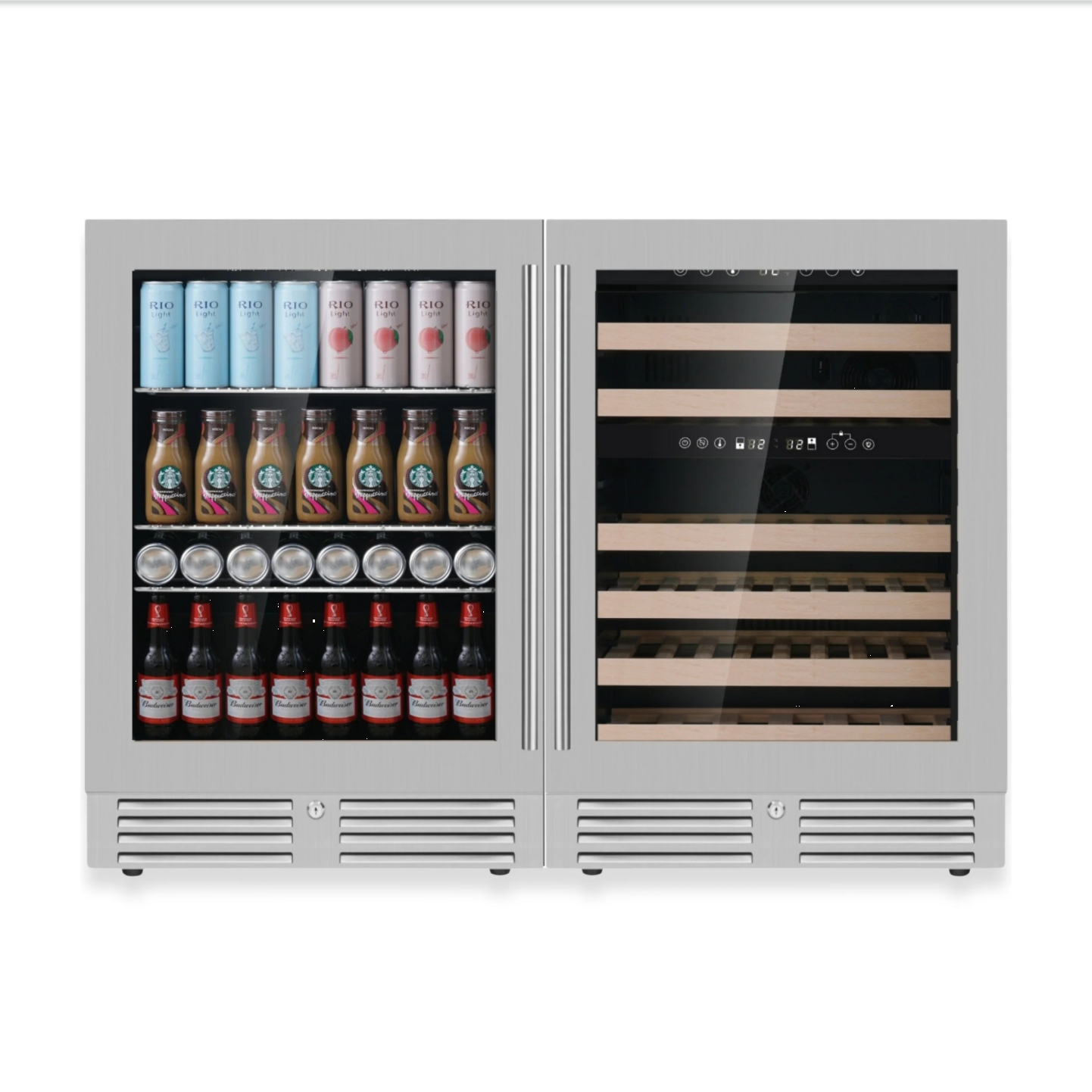 The 48" Ultimate Under-Bench Wine Fridge and Bar Refrigerator Combo is the perfect blend of style and functionality for any home or commercial space. Designed with two separate sections, the wine cooler accommodates up to 48 bottles of wine while the beverage compartment stores 130 cans, ensuring that you can chill both wine and drinks in one sleek unit.
