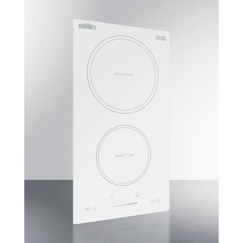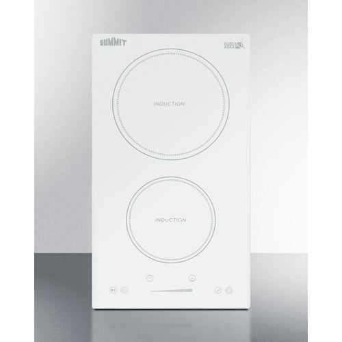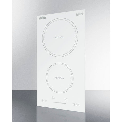 Enjoy the ease, speed, and safety of induction cooking with Summit's selection of energy efficient induction cooktops. The SINC2B231W is a 2-zone induction cooktop designed for use with 208-240V power sources. It comes in a popular size ideal for smaller kitchen spaces, including hotel suites and studio apartments. It is designed for installation in common cutouts sized at 10 5/8" W x 19 5/8" D. This unit requires professional installation (cord not included). Smooth white glass made by EuroKera creates an attractive, easy-to-clean surface. The 2000W rear element is sized at 8 1/4", ideal for boiling large pots of water or cooking with woks and other large cookware. The 1500W front element is sized at 6 1/4" to accommodate small to medium cookware. Centered upfront for convenient use, the touch controls allow intuitive operation, with a slider control panel that makes it easy to adjust your heat. The digital display shows which elements are in use and their power setting. Audible beeps sound when the touch controls are activated. This cooktop is equipped with a child lock that allows you to disable the controls to prevent unintended heating. A "stop & go" function allows you to immediately turn both zones off if needed, with the last settings resuming when reactivated. This unit also includes a timer function that lets you program a power level and cook time (up to 99 minutes) that can either turn the unit off when complete, or serve as a visual countdown with an audible alert when the set time has been reached. Safety features include automatic shutdown, overheat protection, and overflow protection, which will temporarily disable the power if boiling liquid touches the control panel. With its ideal size and advanced safety features, the SINC2B231W is the perfect cooktop to ensure intuitive, safe cooking in a variety of small kitchen settings. For this unit in a black finish, see the SINC2B230B. Additional choices are available in smaller and larger sizes, as well as radiant and coil styles. Browse the full Summit line for more options. NOTE: Induction cooling utilizes magnetized energy that starts inside the cookware, meaning the temperature of the actual cooktop surface does not get nearly as hot as traditional gas or electric elements. Most of the heat is retained inside your cookware, making induction technology the most efficient heating method for your kitchen. Because induction cooking requires magnetic energy, your cookware must be made of cast iron, steel, or magnetic stainless steel. Materials that will not work include aluminum, copper, and non-magnetic stainless steel. Many of your current pots and pans may already be induction-friendly. In order to determine if your cookware will work on an induction surface, simply place a magnet (such as one hanging on your refrigerator) on the bottom of the pan. If the magnet sticks, the pan will cook. Summit also offers an induction cookware set for purchase.