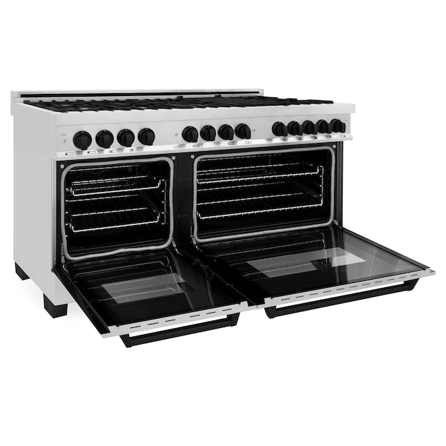 Create a custom kitchen with easy installation - this Autograph Edition range is pre-assembled and ships out complete with matte black knobs, handles, legs, and brass burners
