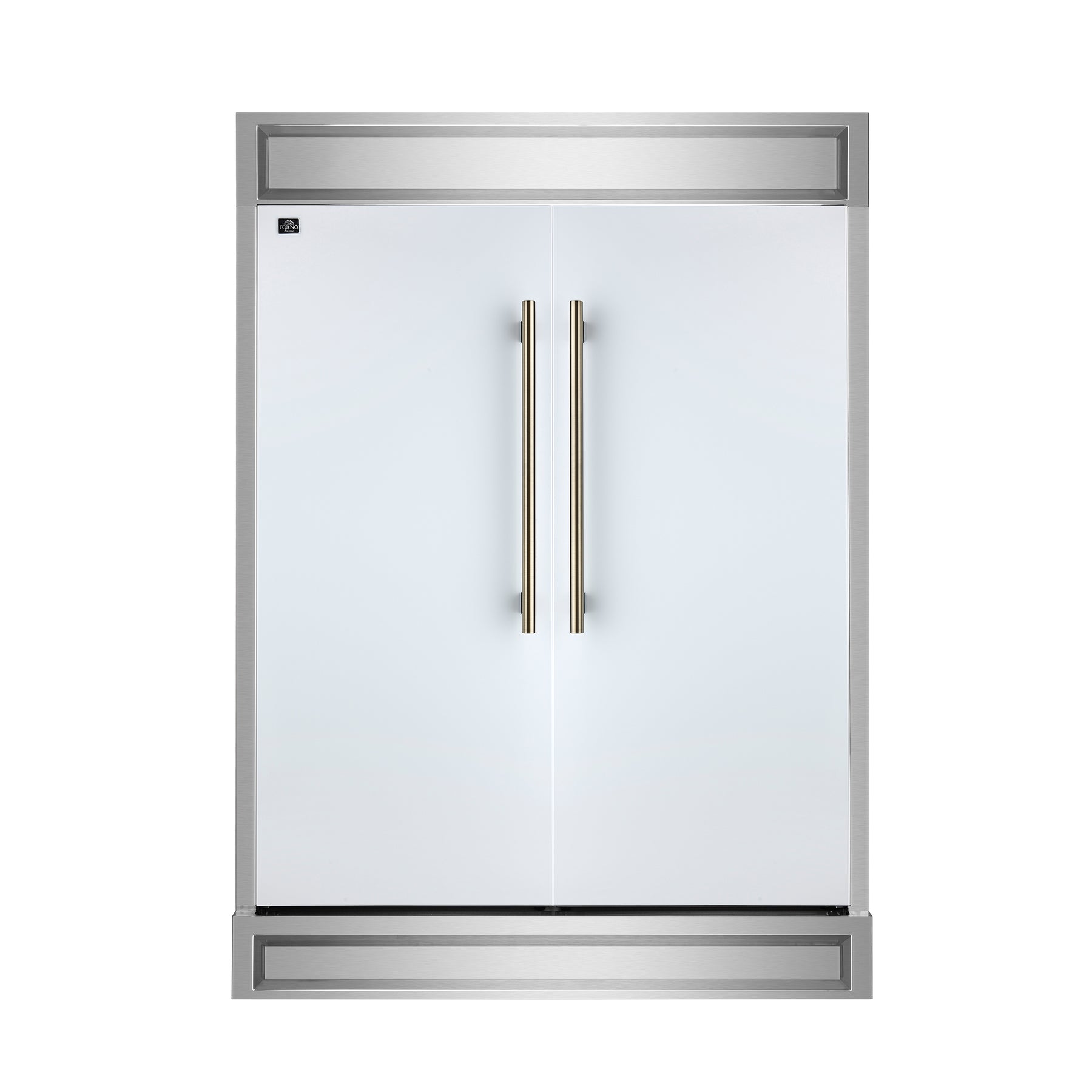 The Forno Maderno offers a premium 60-inch built-in refrigerator look by combining two 28-inch refrigerators with a trim kit for seamless integration. Available in white and featuring antique brass handles, it’s part of our elegant Espresso line. With 27.2 cu.ft. of total capacity, it delivers generous storage and features Convertible Cooling Zones, Total No-Frost Technology, and a refined control panel. Six glass shelves with silver trims, 6 drawers, and LED lighting enhance both organization and visibility. The VCM doors and metal back panel ensure long-lasting durability, while the Energy Star Certification guarantees sustainability.