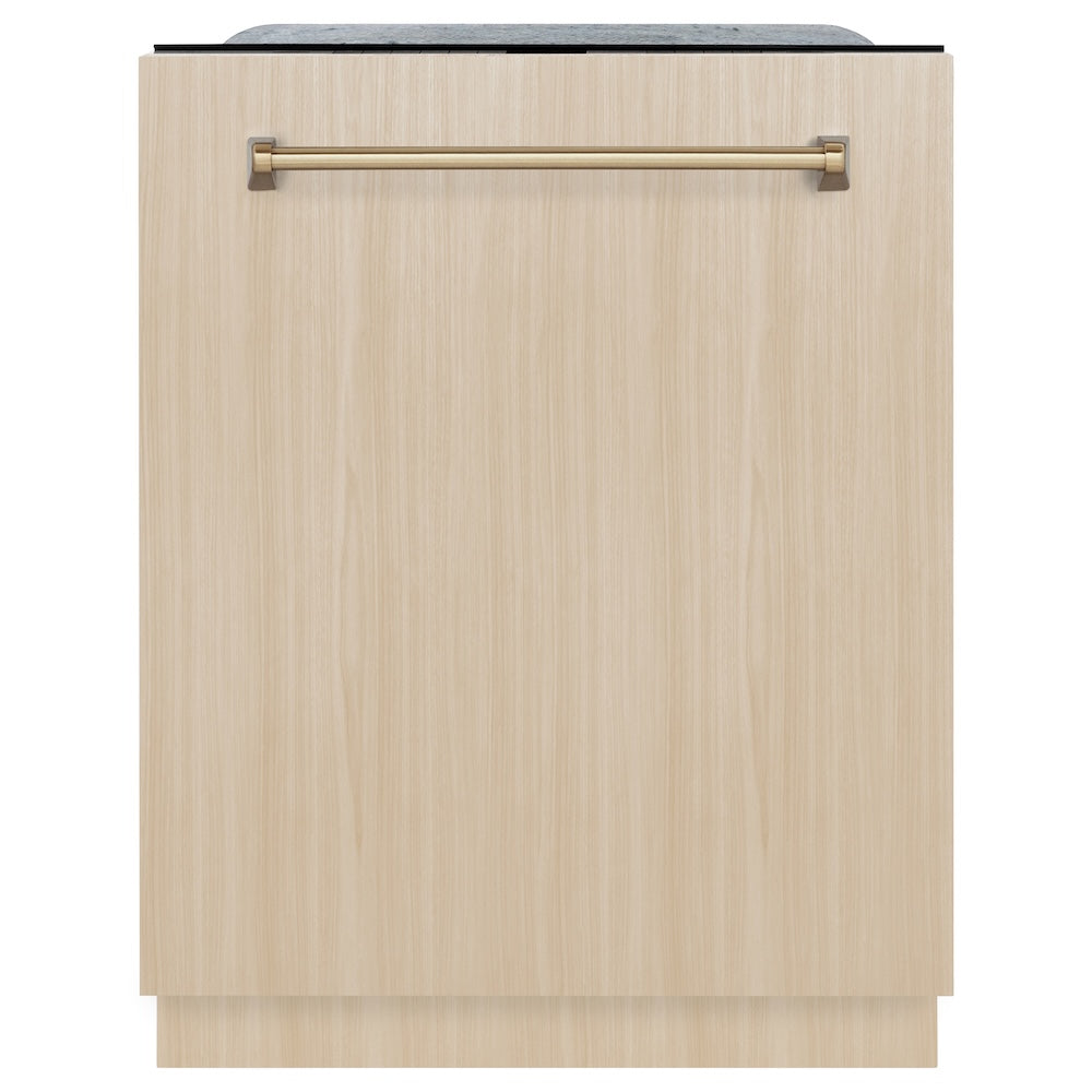 ZLINE Autograph Edition 24 in. Monument Series 3rd Rack Top Touch Control Tall Tub Dishwasher in Custom Panel Ready with Champagne Bronze Handle, 45dBa (DWMTZ-24-CB)
