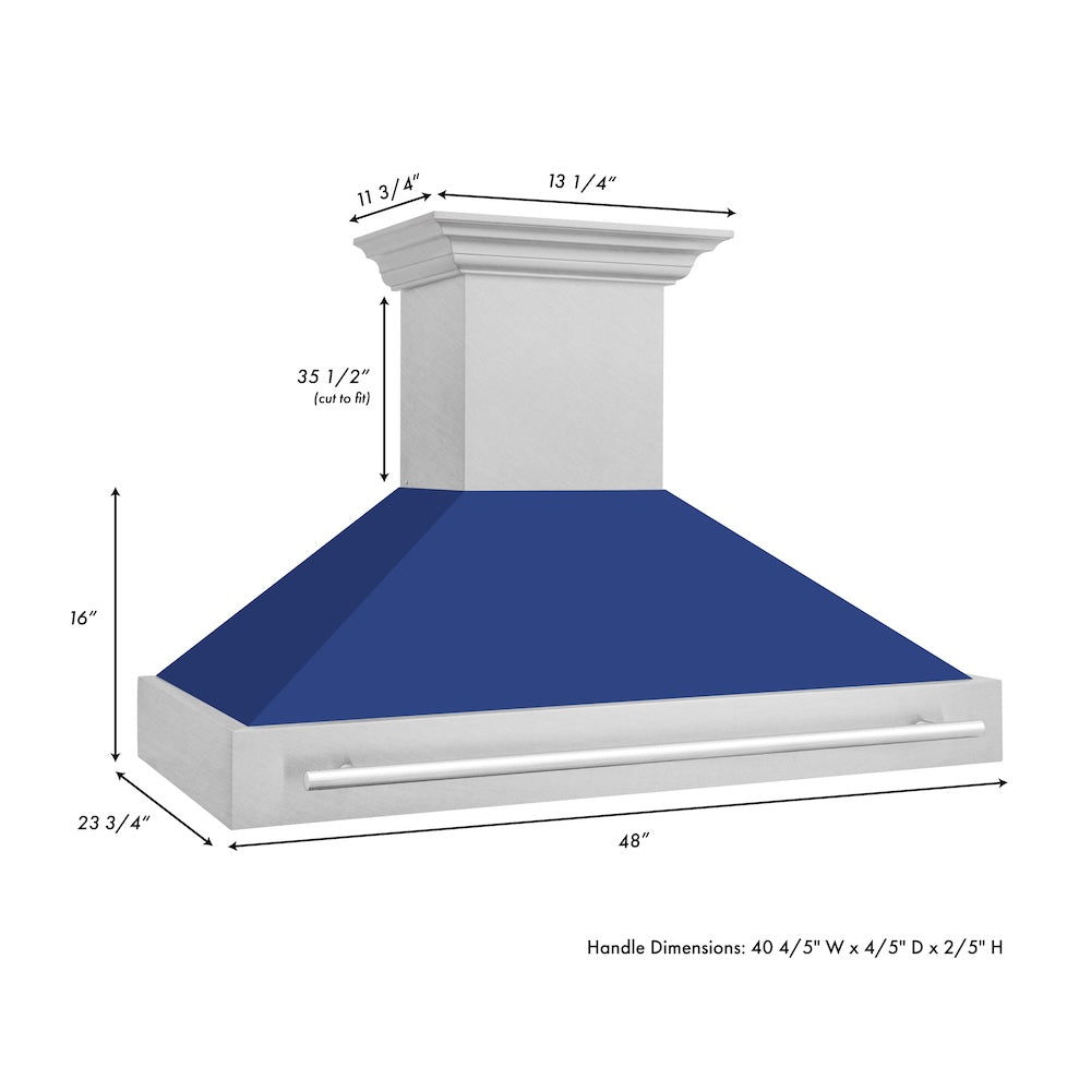 ZLINE 48 in. Satin Stainless Steel Wall Mount Range Hood with Blue Matte Shell and Stainless Steel Handle (8654SNX-BM-48)