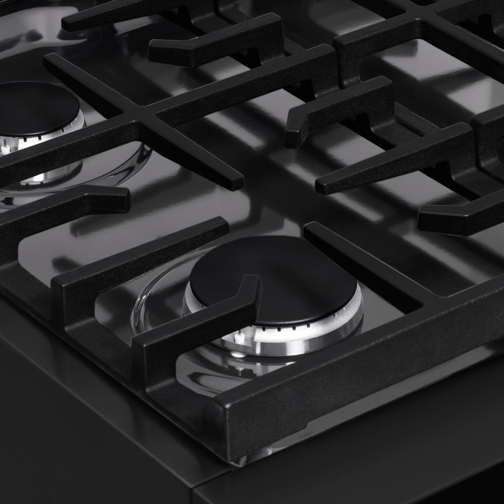 • Modern Cooktop - Featuring an upgraded cast iron grate configuration for a bold style and easy transferring of cookware to various burners