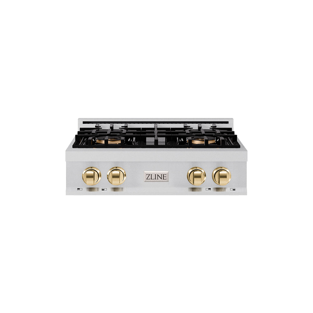ZLINE Autograph Edition 30 in. Classic Gas Rangetop with 4 Burner DuoPro™ Cooktop in Stainless Steel and Polished Gold Accents (PCRTZ-30-G)