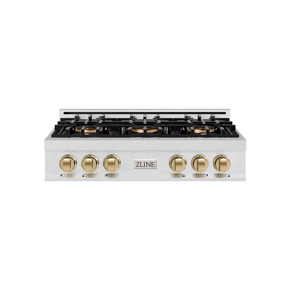 ZLINE Autograph Edition 36 in. Classic Gas Rangetop with 6 Burner DuoPro™ Cooktop in Satin Stainless Steel and Champagne Bronze Accents (PCRTSZ-36-CB)