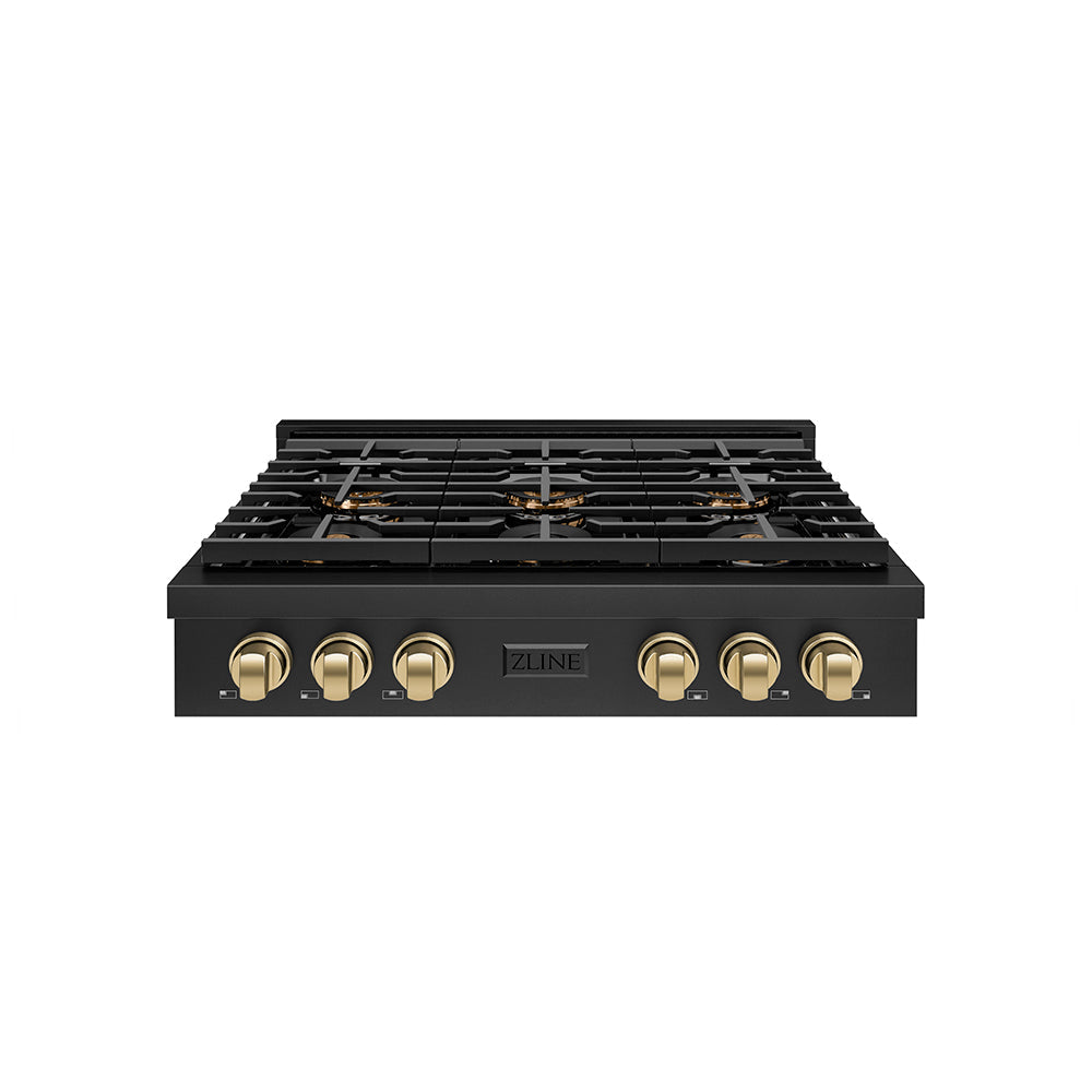 ZLINE Autograph Edition 36 in. Paramount Gas Rangetop with 6 Burner DuoPro™ Cooktop in Black Stainless Steel and Champagne Bronze Accents (PSRTBZ-36-CB)