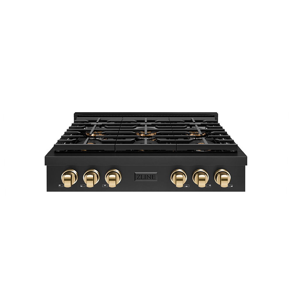 ZLINE Autograph Edition 36 in. Paramount Gas Rangetop with 6 Burner DuoPro™ Cooktop in Black Stainless Steel and Polished Gold Accents (PSRTBZ-36-G)