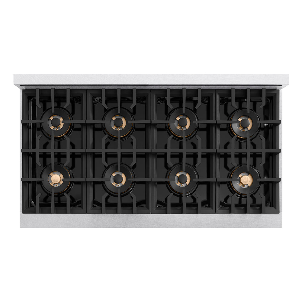 ZLINE Autograph Edition 48 in. Classic Gas Rangetop with 8 Burner DuoPro™ Cooktop in Satin Stainless Steel and Champagne Bronze Accents (PCRTSZ-48-CB)