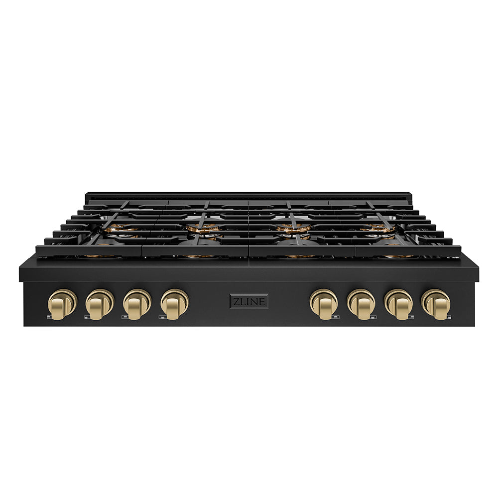 ZLINE Autograph Edition 48 in. Paramount Gas Rangetop with 8 Burner DuoPro™ Cooktop in Black Stainless Steel and Champagne Bronze Accents (PSRTBZ-48-CB)