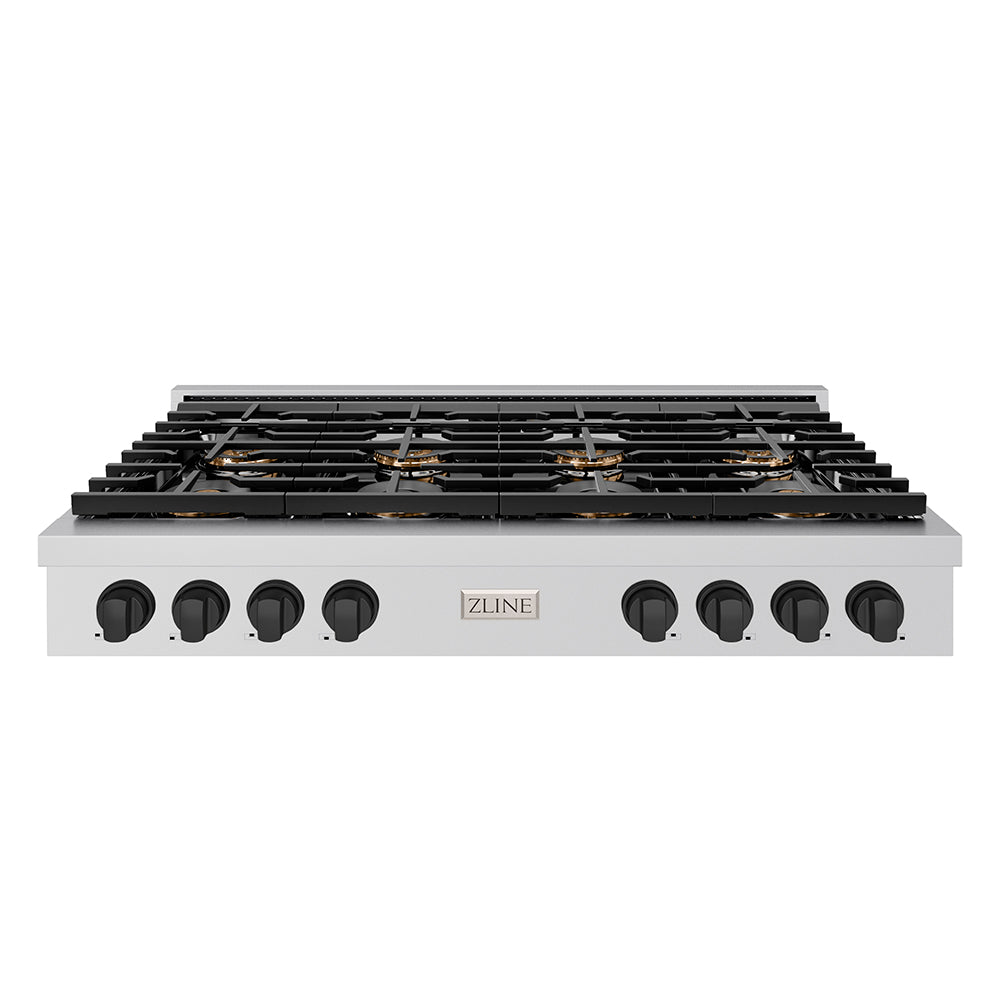 ZLINE Autograph Edition 48 in. Paramount Gas Rangetop with 8 Burner DuoPro™ Cooktop in Stainless Steel and Matte Black Accents (PSRTZ-48-MB)