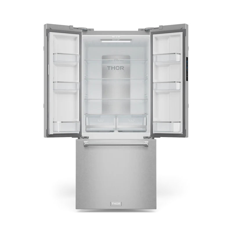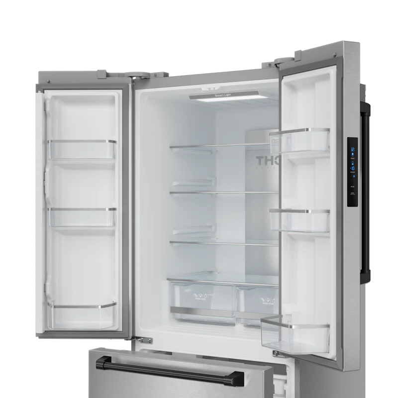 Experience superior freshness with the 30 Inch 17.5 cu ft French Door Counter Depth Refrigerator in Black/Stainless Steel. With advanced cooling technology, spacious interiors, and customizable features, this refrigerator ensures your ingredients stay at peak freshness. Designed for durability and efficiency, it brings top-tier performance and style to your kitchen.