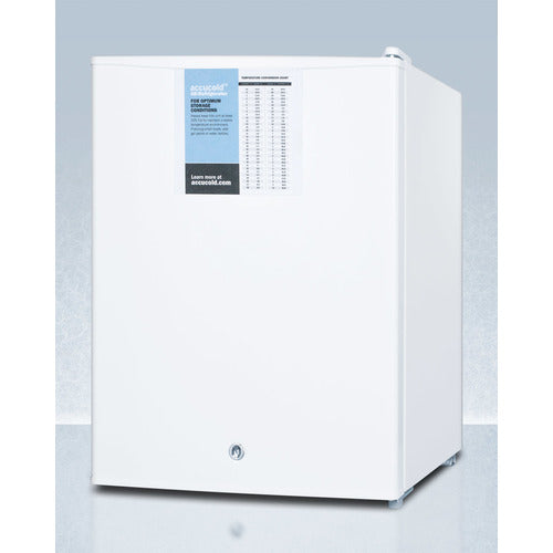Accucold's PRO Series features all-refrigerators and all-freezers designed for reliable temperature stability in institutional settings. The FF28LWHPRO is a compact all-refrigerator sized for countertop use, with a white exterior finish. We include a factory-installed lock for keyed security. A hospital grade cord with a 'green dot' plug offers added safety in high traffic areas. This unit has a digital thermostat mounted on top of the cabinet to allow users to modify the temperature without opening the door. The door is user-reversible for added convenience. Inside, the FF28LWHPRO utilizes automatic defrost operation for reduced maintenance. An internal fan helps to stabilize the interior temperature from top to bottom, with wire shelving to ensure cold air isn't blocked. THis unit includes an adjustable full-width wire shelf, removable half shelf that can be positioned above the compressor, and a flat door liner as recommended by the CDC. Additional features include a factory-installed probe hole for users to install their own temperature monitoring equipment. The FF28LWHPRO can be paired with a matching all-freezer (model FS30LPRO). Additional options, including NIST calibrated temperature alarms and data loggers, can also be added. Contact our product specialists for more information. *NOTE: This unit's thermostat is pre-set for Celsius. If you prefer Fahrenheit, add complimentary option DTMEDF or let your sales representative know upon order.