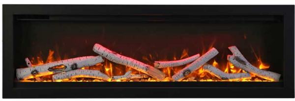SYM-74 Electric Fireplace – 74″ Clean Face, Built-in with log and glass, black steel surround
