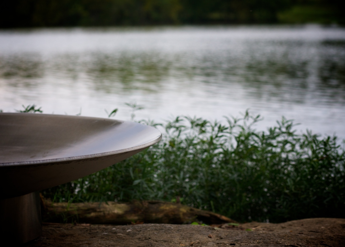 Each functional steel sculpture is made from one hundred fifty pounds of very thick one quarter inch American made 304 stainless steel used for longevity and also for its corrosion and rust resistance. Truly maintenance free your Bella Vita can be left outdoors year around in any conditions and comes supplied with a rain drain in the bottom of the basin. The matte bowl finish is complimented by the brightly polished base and every Bella Vita Fire Pit Art®  is individually numbered by the artist, Rick Wittrig. Virtually indestructible each fire pit comes with a 100 Year Guarantee on materials and craftsmanship.