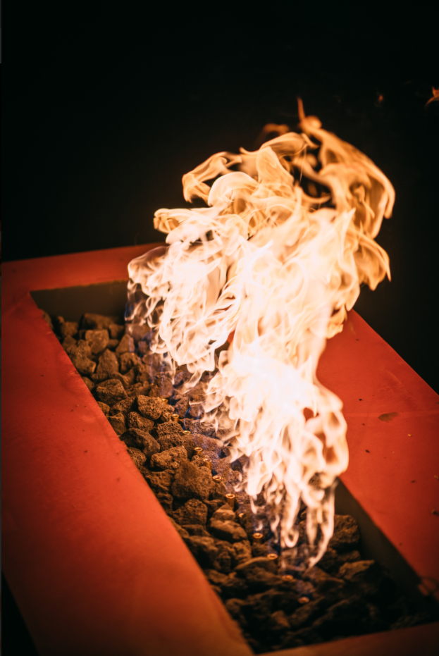 his new modern design Linear Series from Fire Pit Art features thick three sixteenth carbon steel material and your choice of powder coating color. Steel leveling casters for a solid footing, a steel cover that protects the gas burners and converts the fire pit into a table are real advantages. Life-time warranty, Stainless Steel burner, all brass keyed valve, lava rock and stainless-steel gas flex lines round out this package.