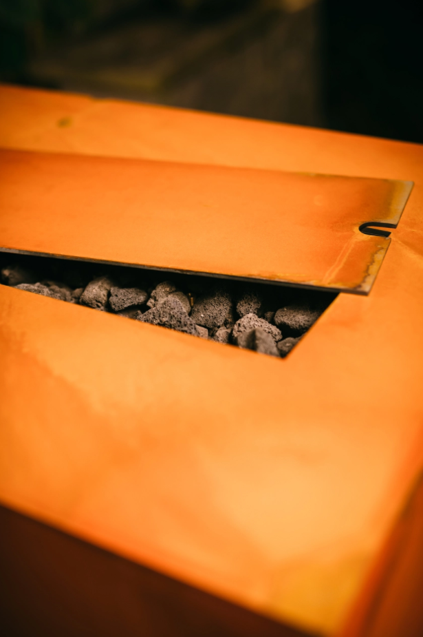 Our pieces are created using 1/4" mild carbon steel. Ā The steel is sandblasted and taken down to bare steel before being powder coated to help ensure a quality finish for your fire pit.